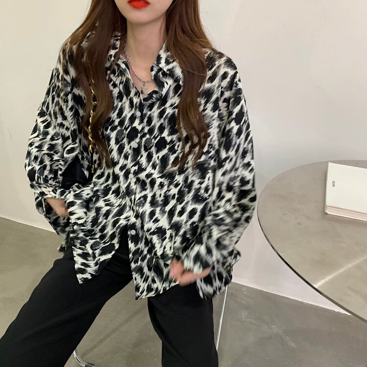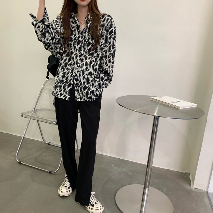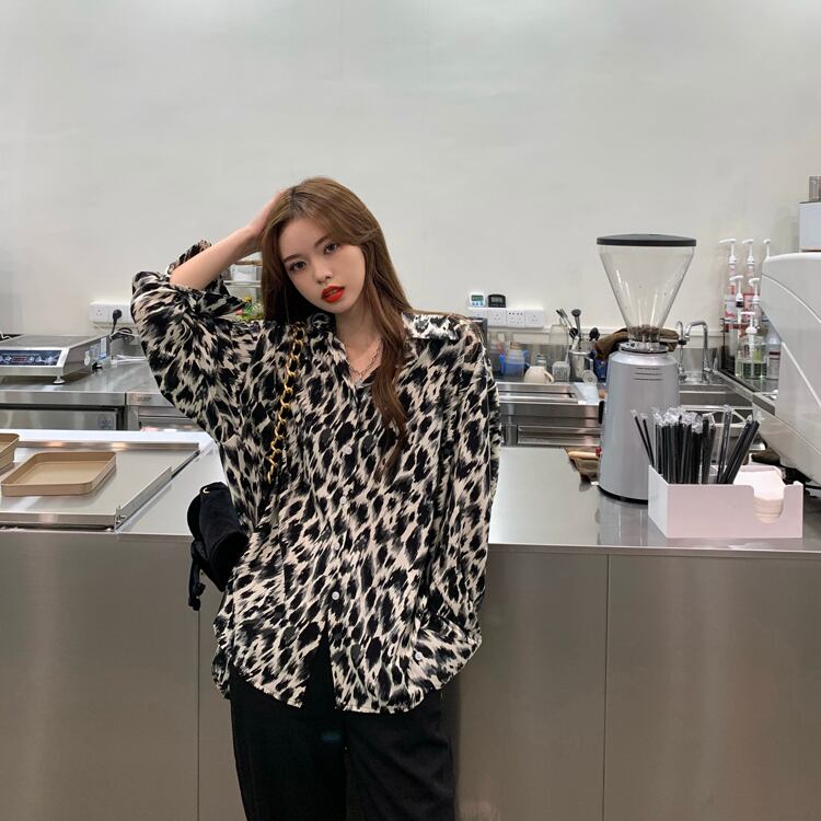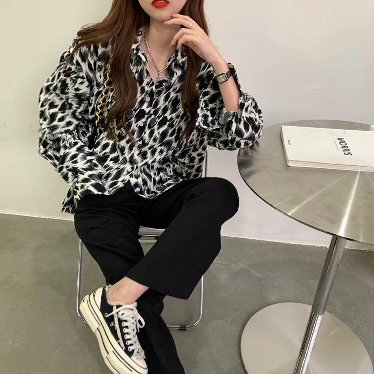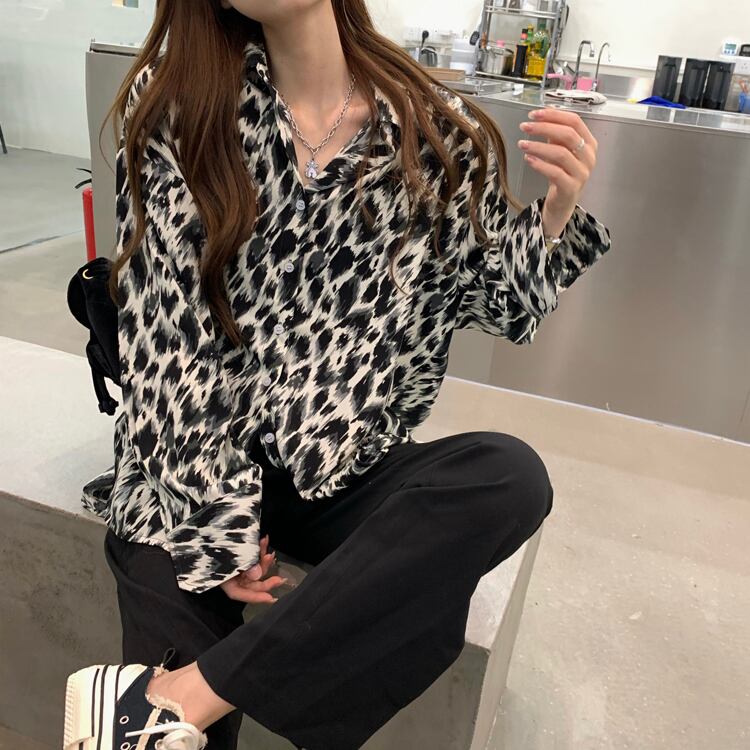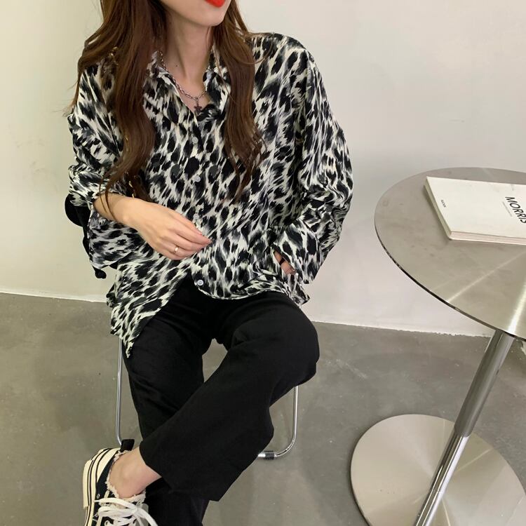 オータムスタンダードプリントシフォンシャツ ルーズトップス ロング レトロ 秋物 ドラファッションホール23749812526