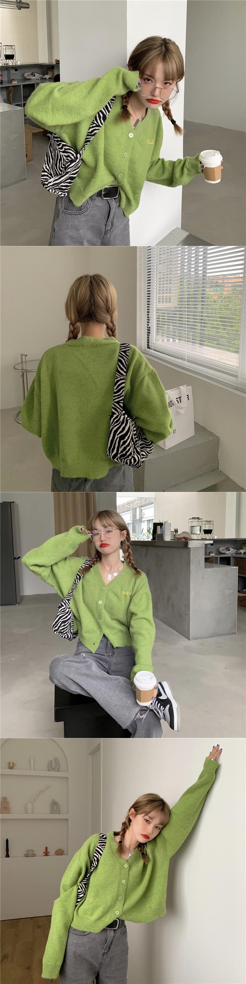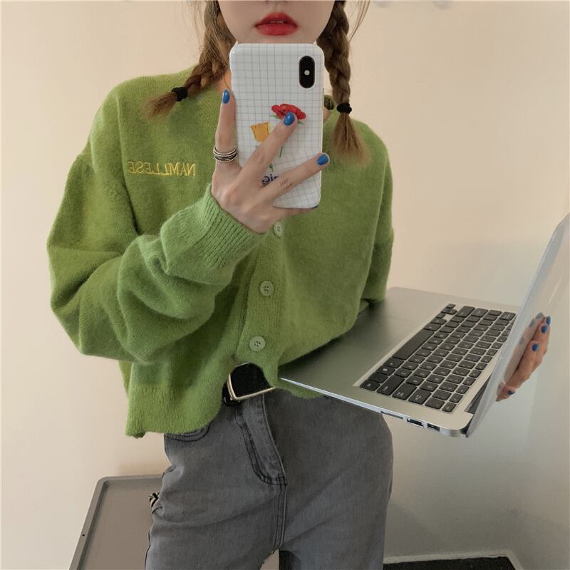 Vネックショートレッドニットカーディガンジャケット ルーズスタイルオータム ロング 秋物 ドラファッションホール62584018284