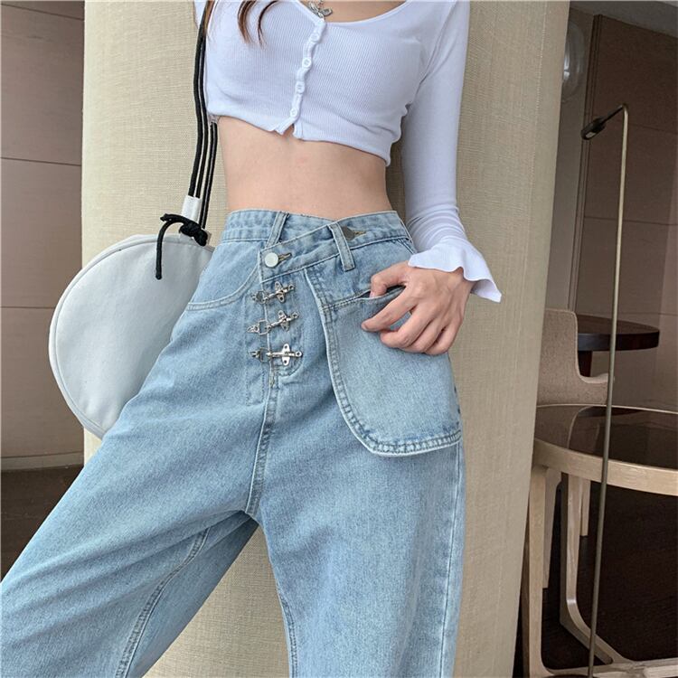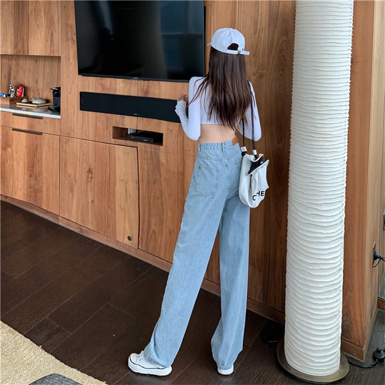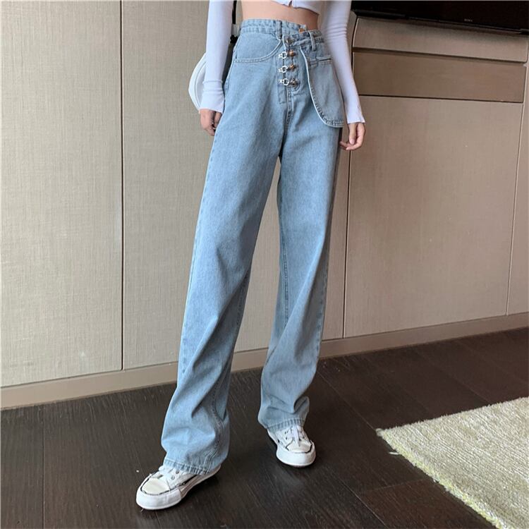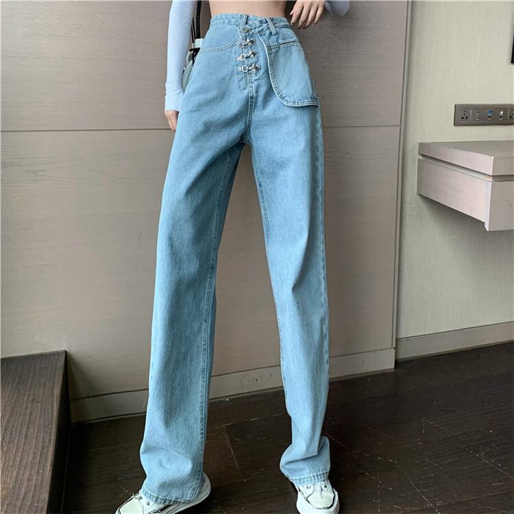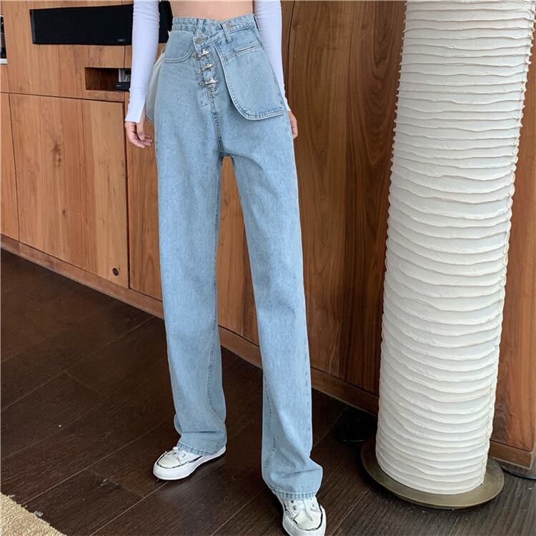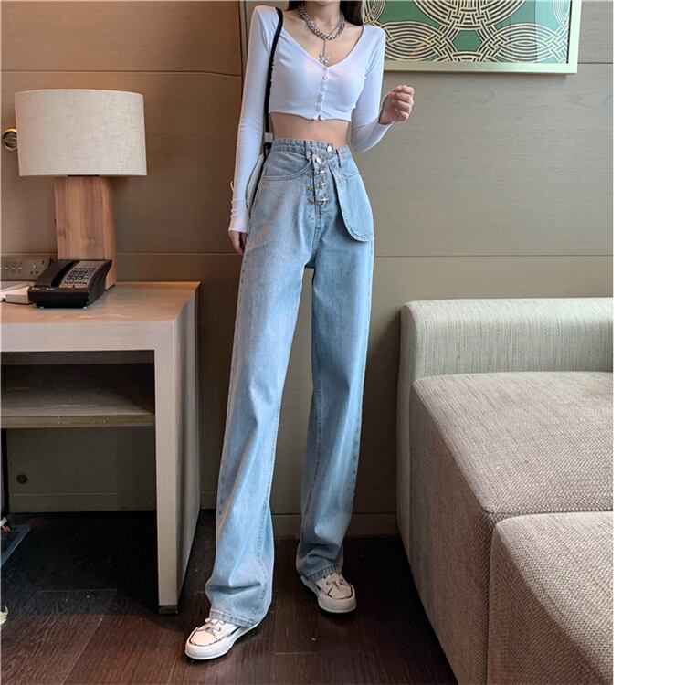 パンツレディース2020年秋新作ハイウエストスリムジーンズストレートドレープワイドレッグパンツデニムパンツ ドラファッションホール31427697414