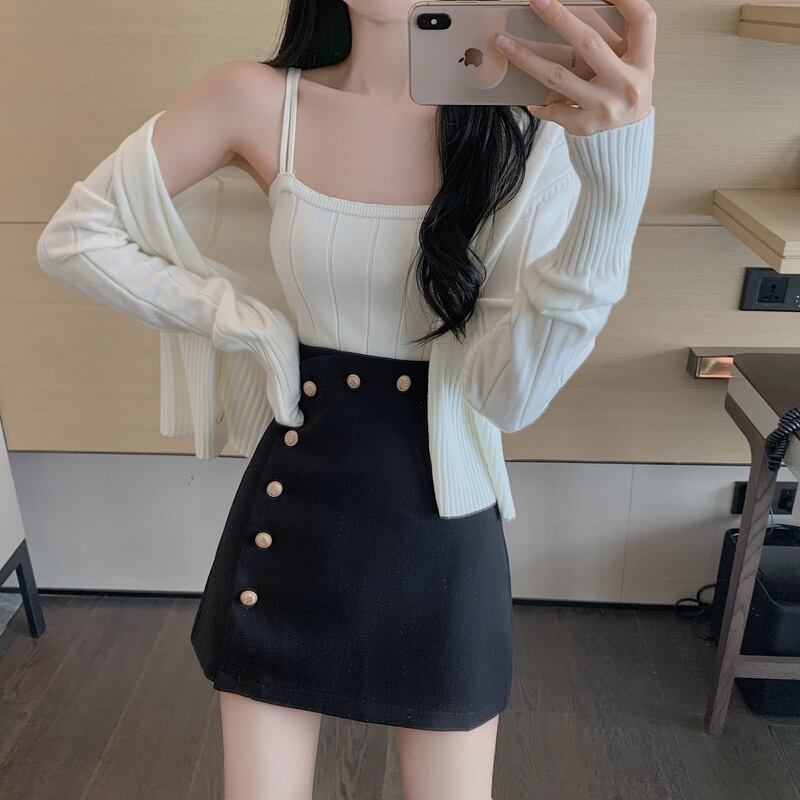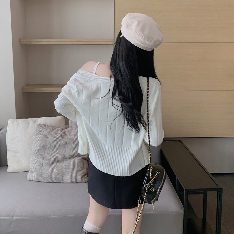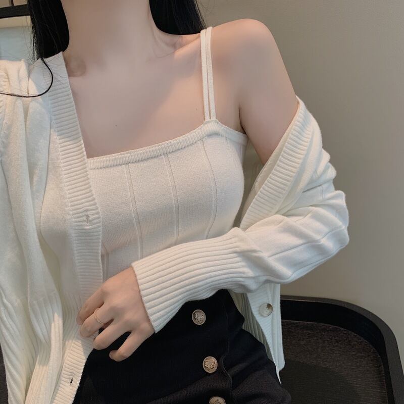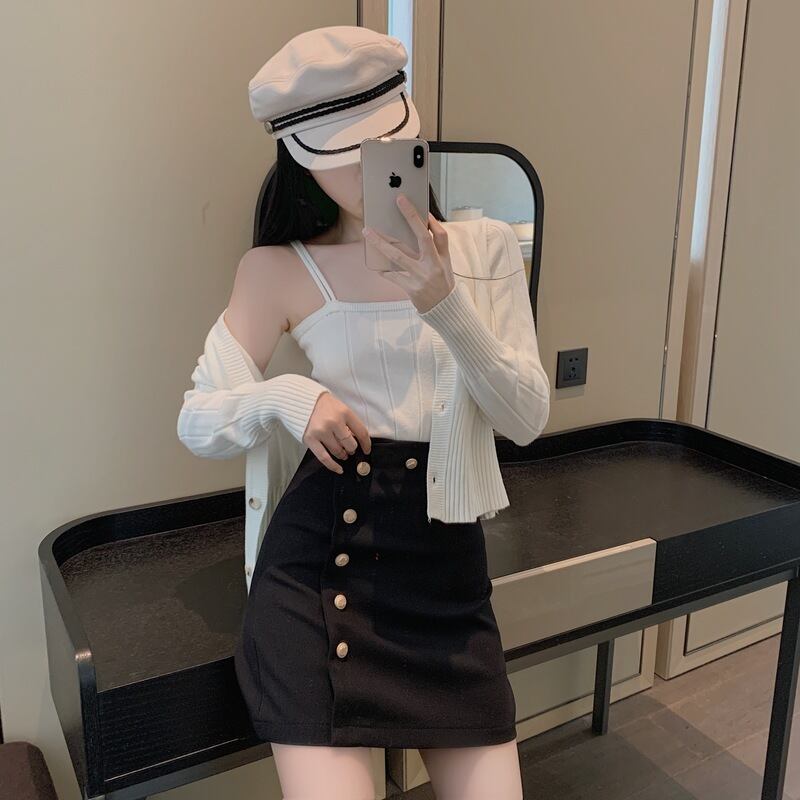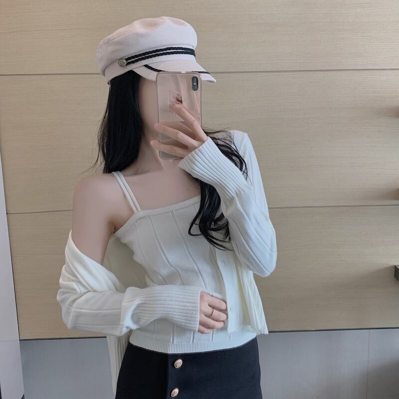 色:ホワイトサスペンダー,白いカーディガン,ブレストスカート