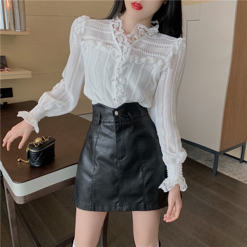 オータムレディースレースシャツ トップス ハイウェストウェストスカート スタイル 秋物 ドラファッションホール69178569481