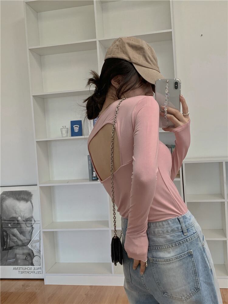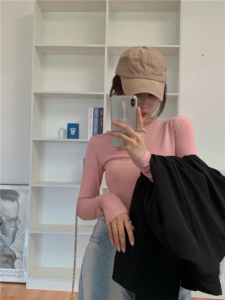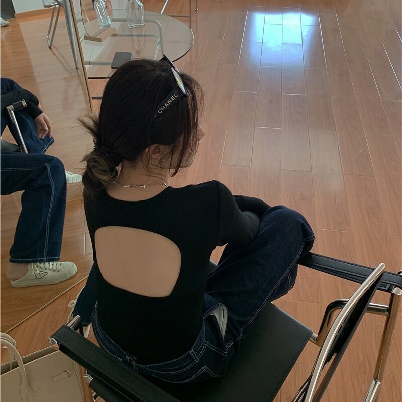 オータムTシャツ シャツ ブラックスリムトップス ロング 秋物 ドラファッションホール40964769845