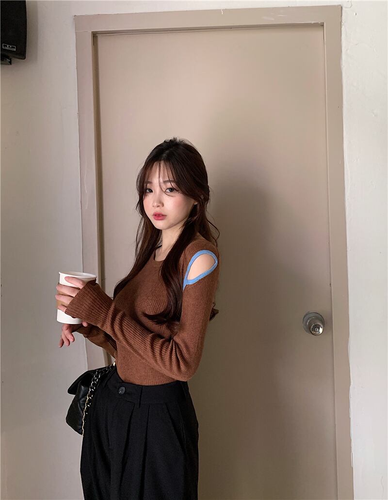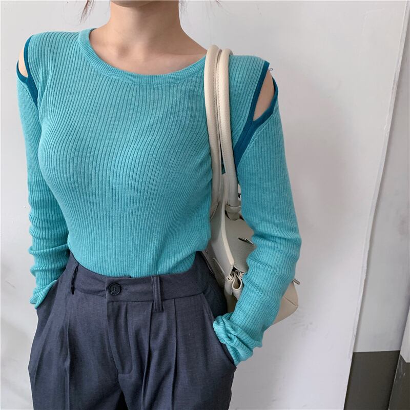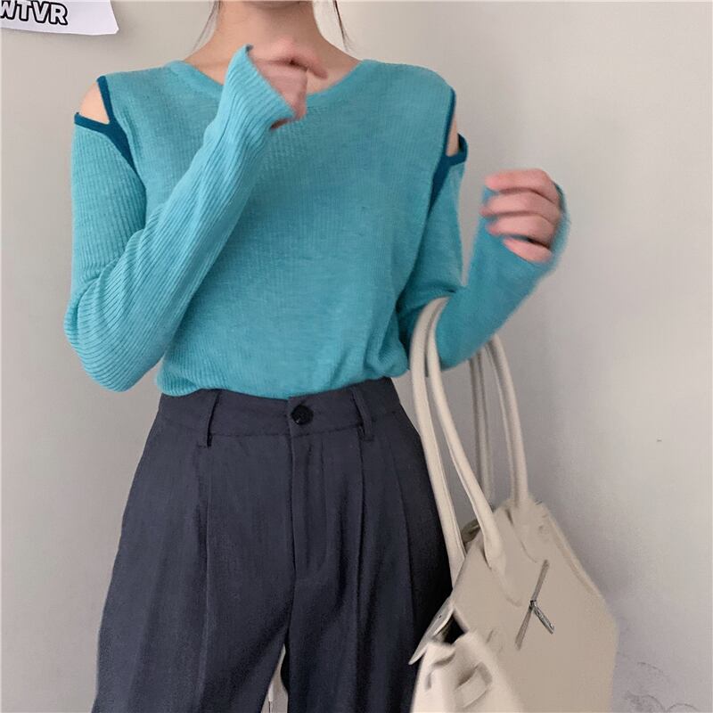 薄手ブラックシャツ ニットセーター レディースオータムスタイルトップス ロング 秋物 ドラファッションホール84502777570