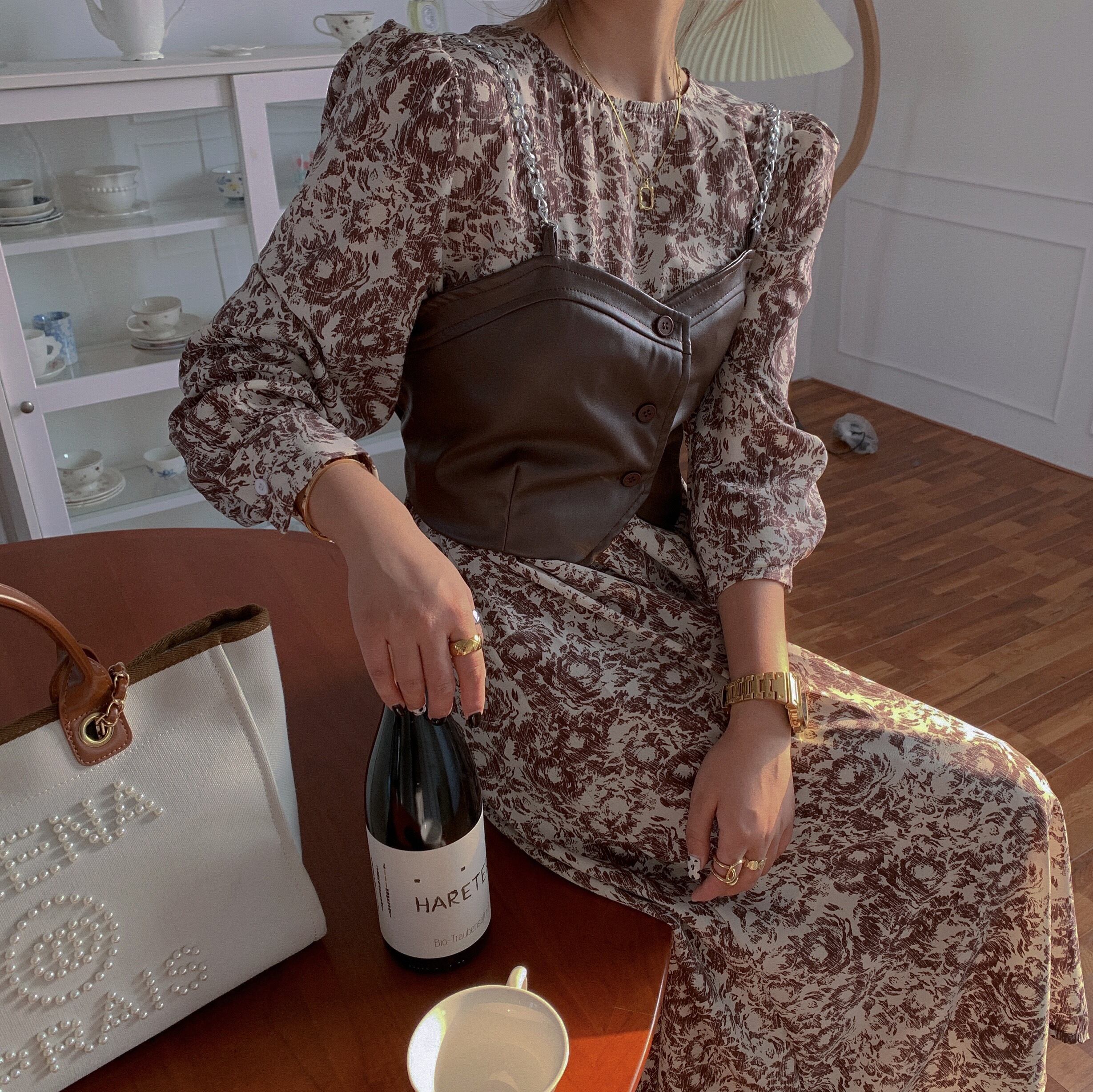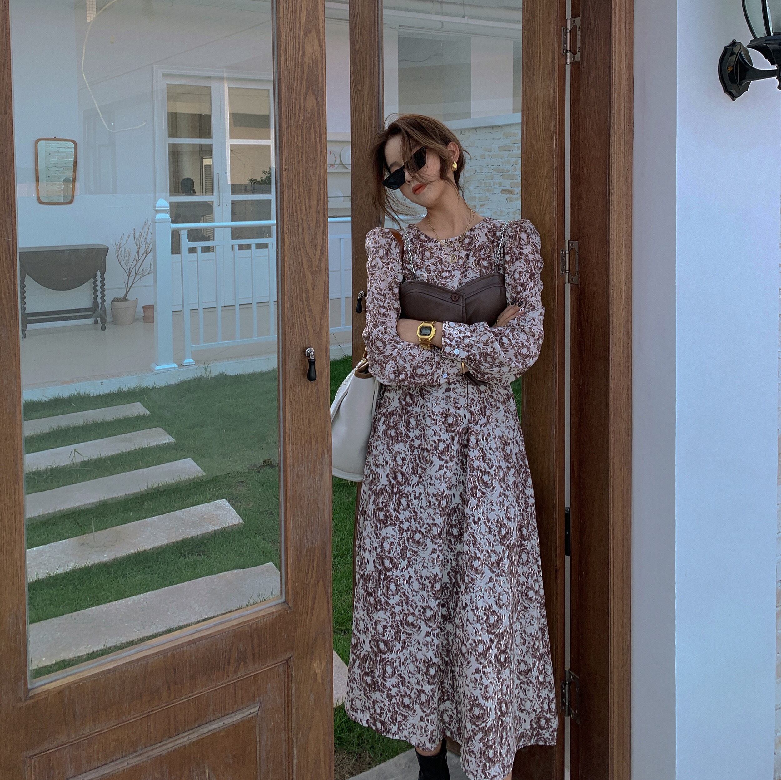 オータムフローラルドレス スタイルレッドレディース 秋物 花柄 ドラファッションホール51584517999