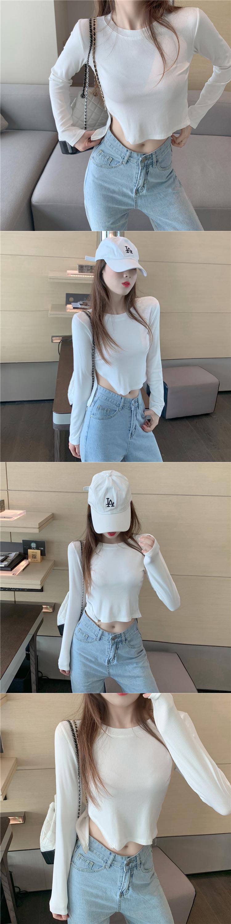 センス長袖Tシャツレディースブラックボトミングシャツ2020年秋新作スリムショートクロップトップイントレンド ドラファッションホール32424728747