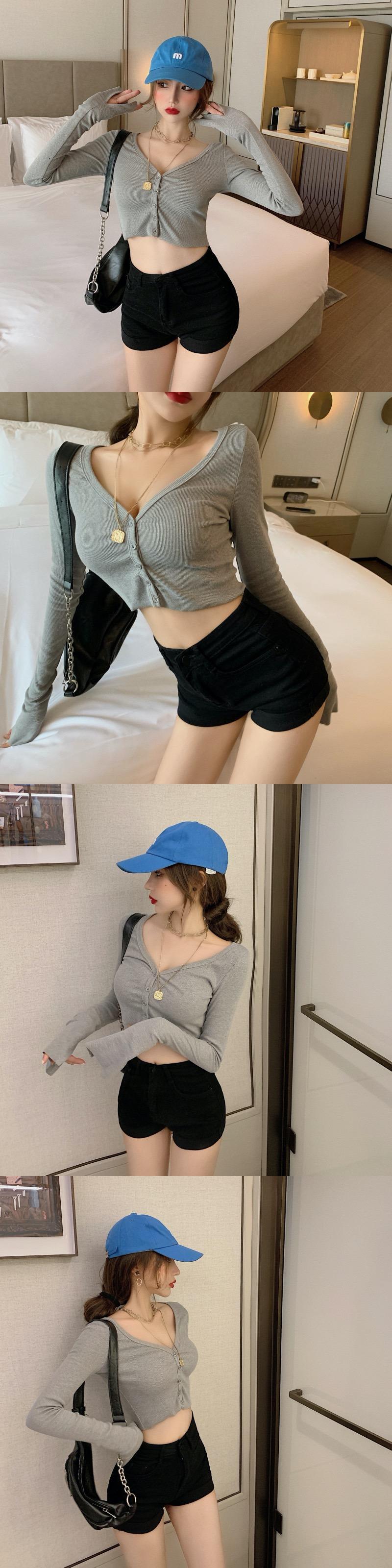 Vネックニットボトミングシャツ長袖Tシャツレディース2020年秋新作スリム・シンショートクロップドブラックトップトレンド ドラファッションホール31450510889