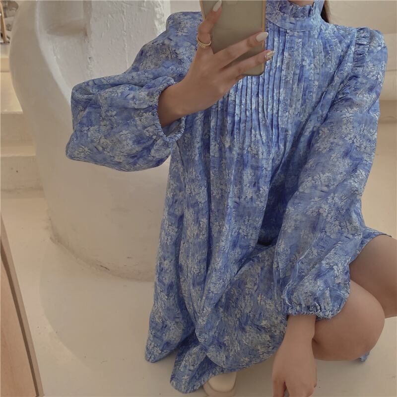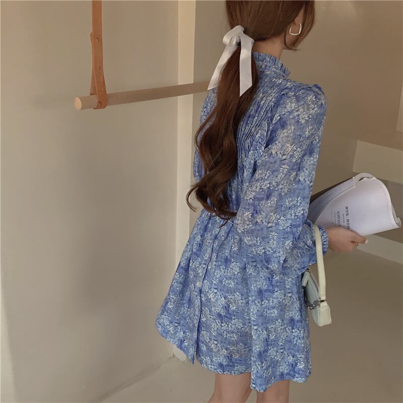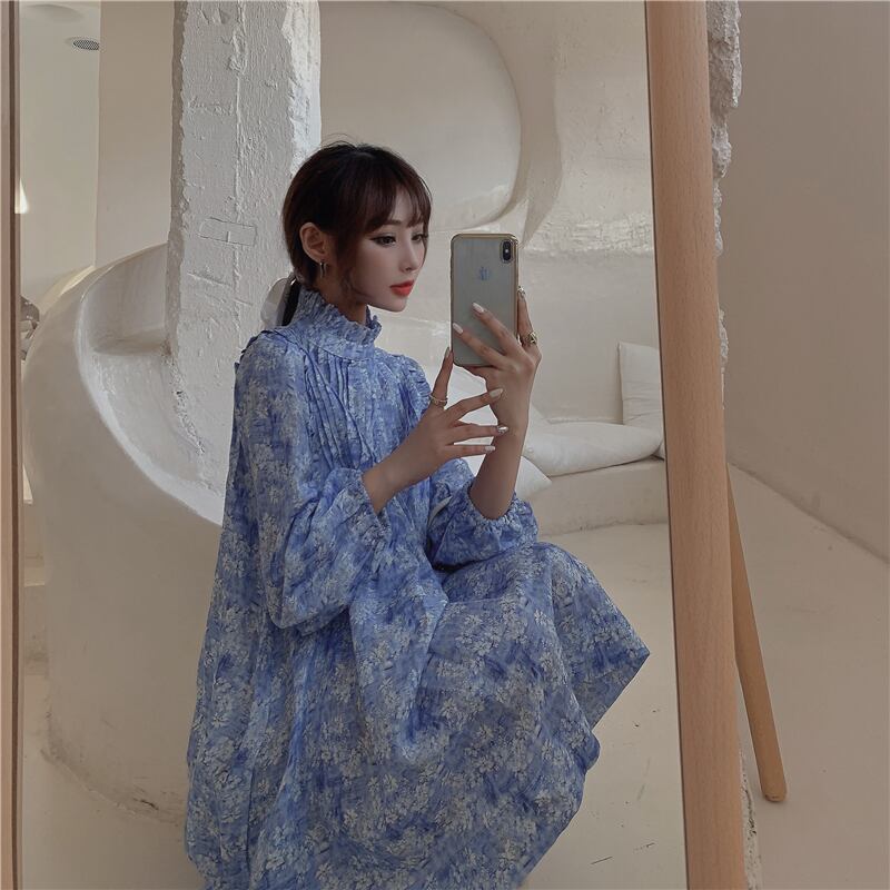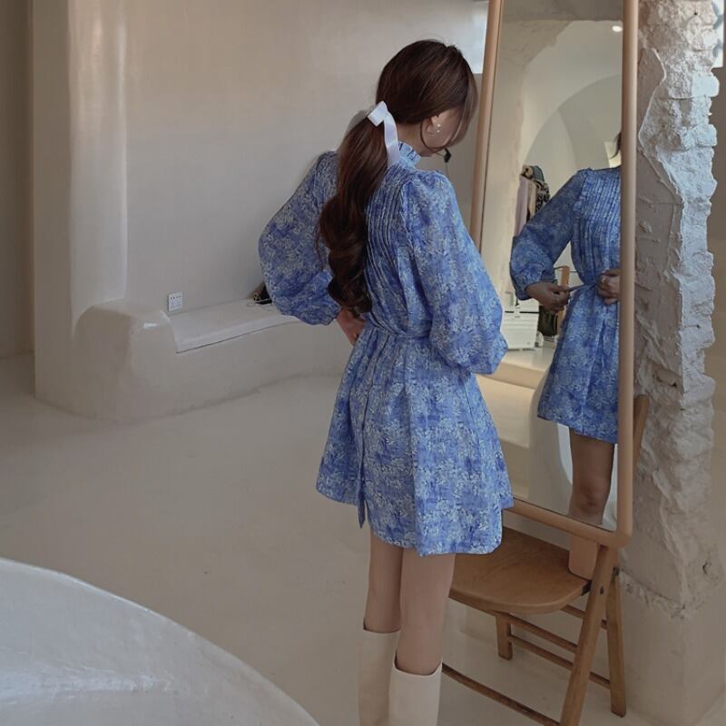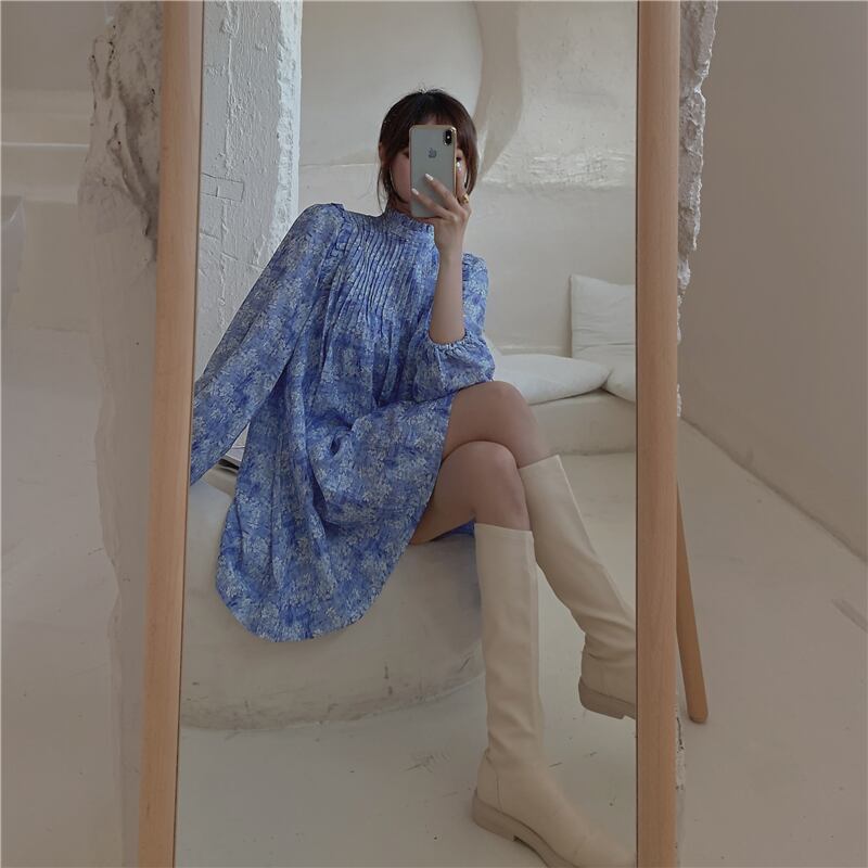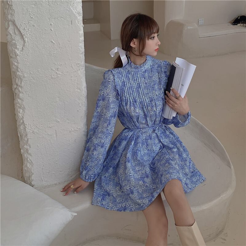 センフローラルホワイト長袖ドレス女性のウエストは細く、2020年秋に気質の新しい小さなスカート ドラファッションホール25694213275