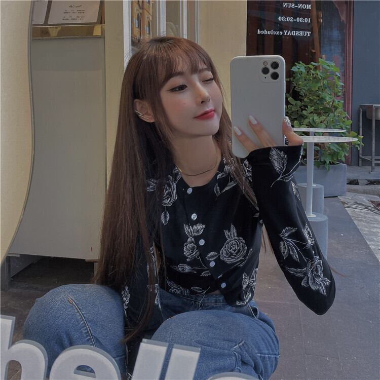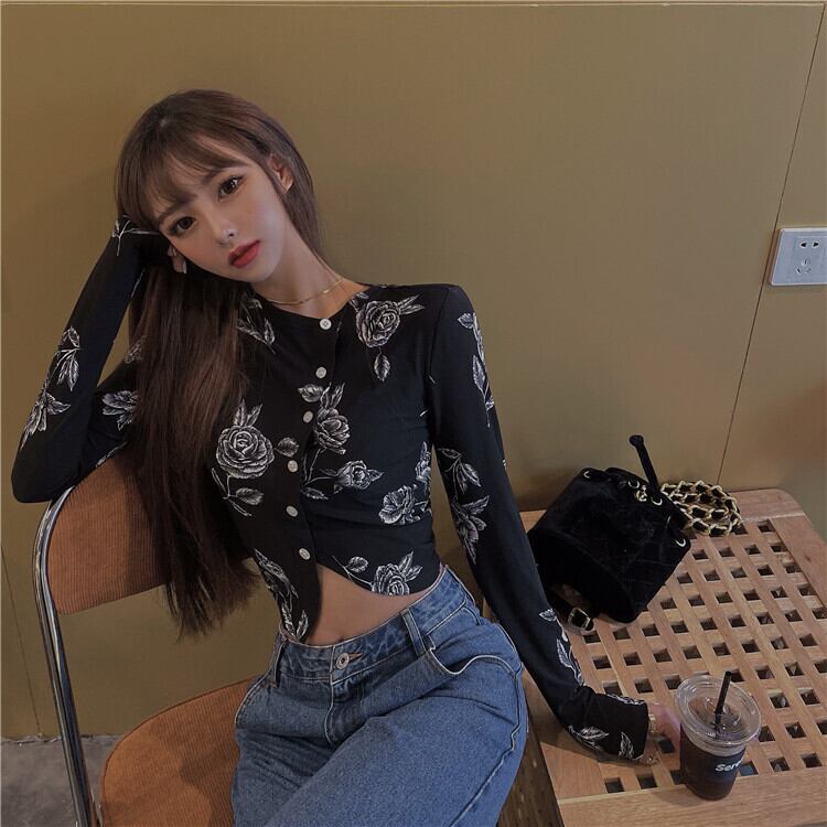 2020年秋新しいスリムスリミングボトミングシャツプリントデザインセンス長袖Tシャツ女性ショートクロップトップイン ドラファッションホール84499034072