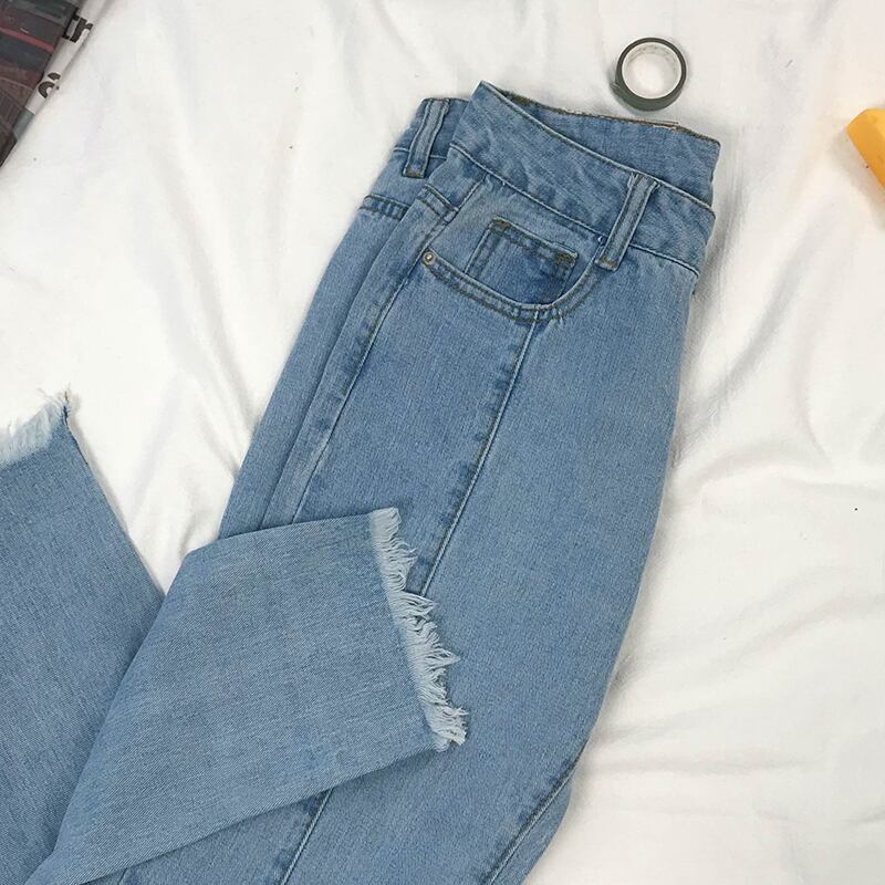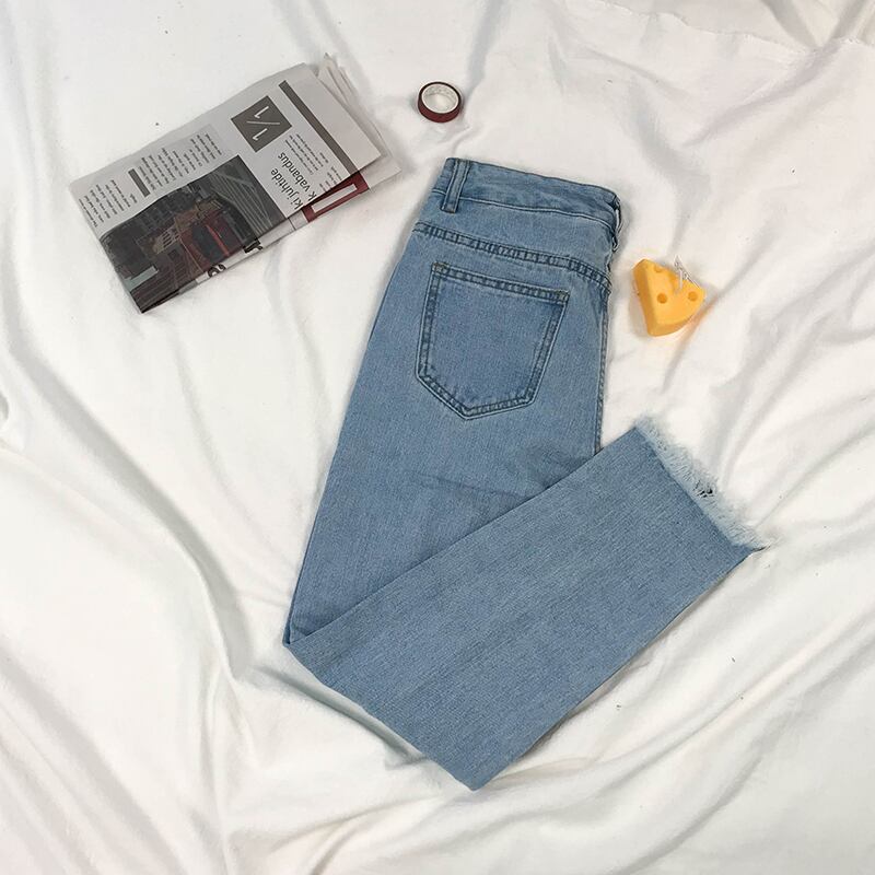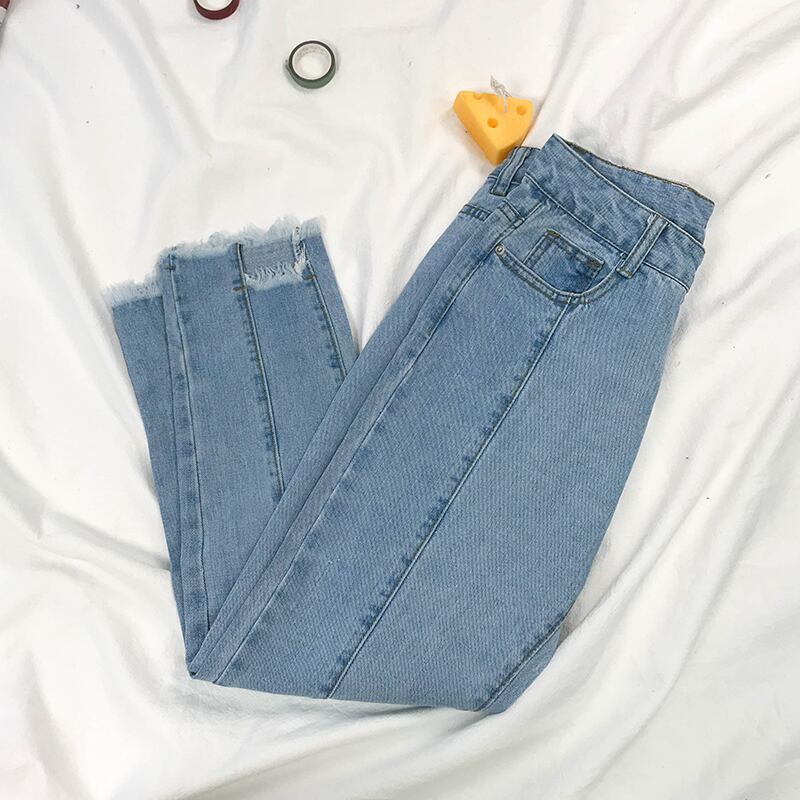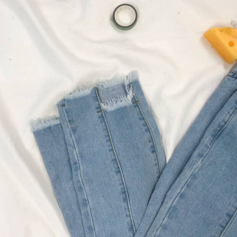 2020年秋新作ライトブルーオールマッチジーンズレディースハイウエストシンローエッジパンツストレートドレープワイドレッグパンツ ドラファッションホール43337452268