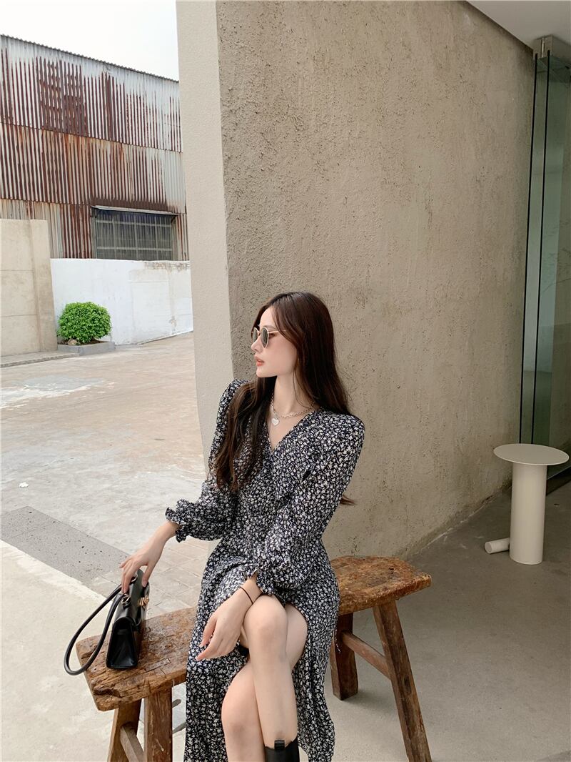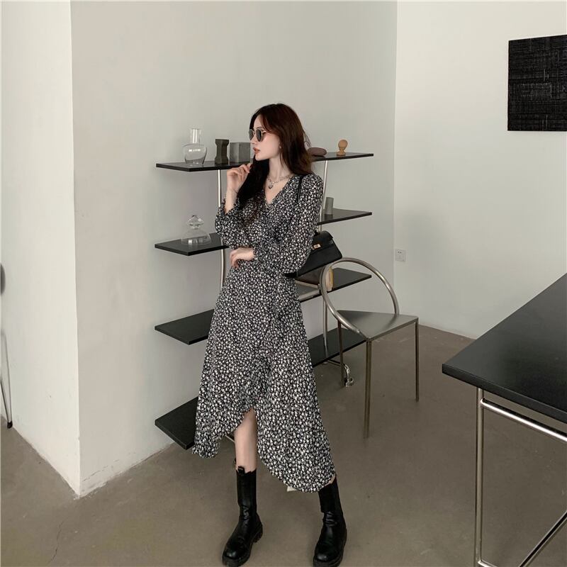 フローラルシフォンドレスレディースウエストウエストと細い気質2020年秋スモールミドル丈セクシースカート ドラファッションホール2402965861