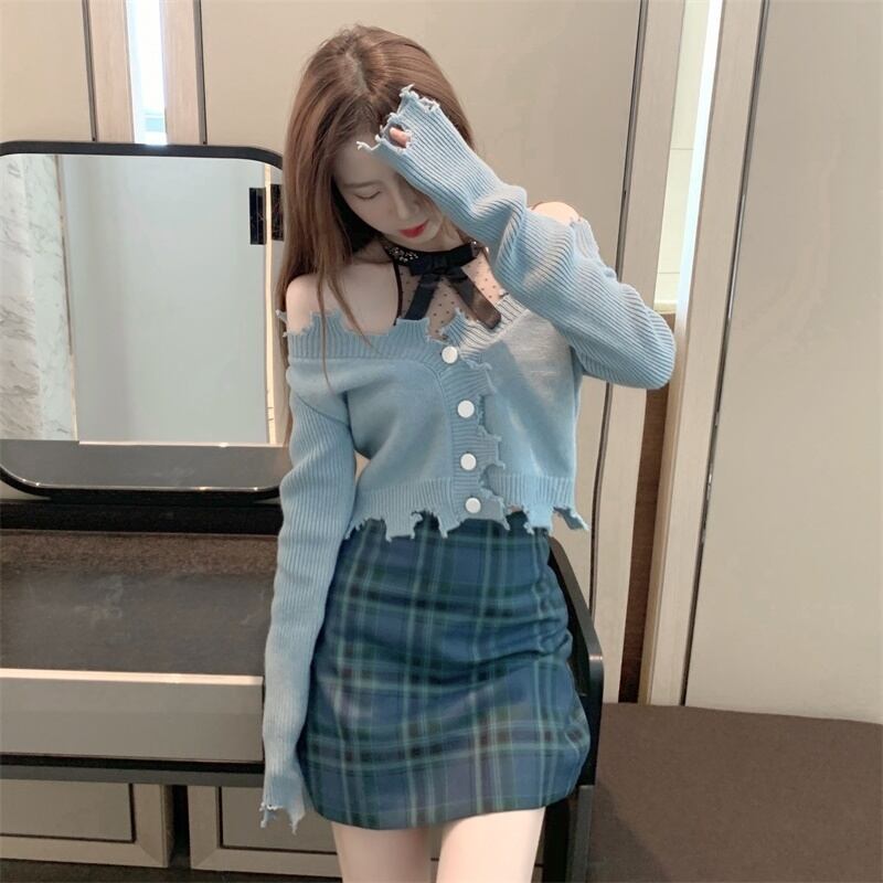 スリーピースオータムスーツウィメンズ2020新しいショートニットカーディガンジャケット、メッシュセクシーヒップスカート ドラファッションホール15019573580