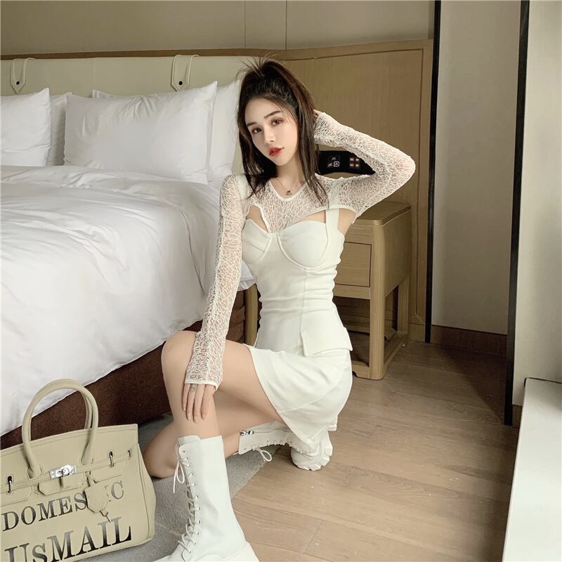 小さなセクシーなスリムスカート2020年秋新しいウエストスリムホワイトサスペンダードレス女性 ドラファッションホール21892377118