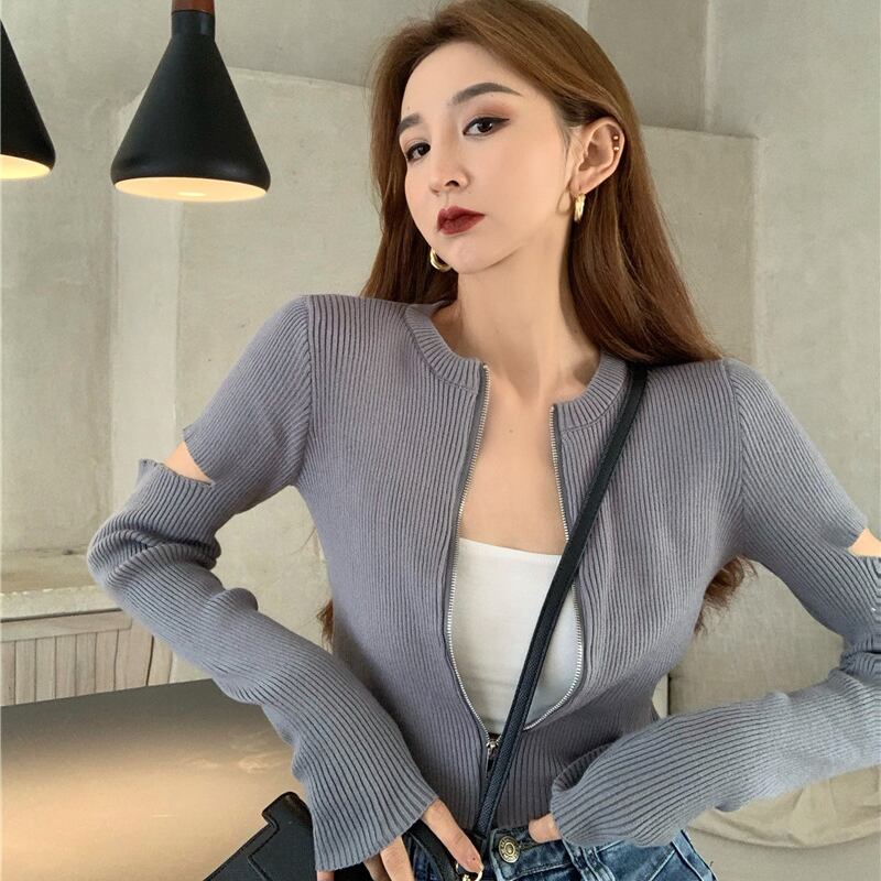 センスジッパーセーターレディース2020年秋ニュースタイルスリムショートウエスタンスタイル長袖ニットトップス ドラファッションホール71888959440