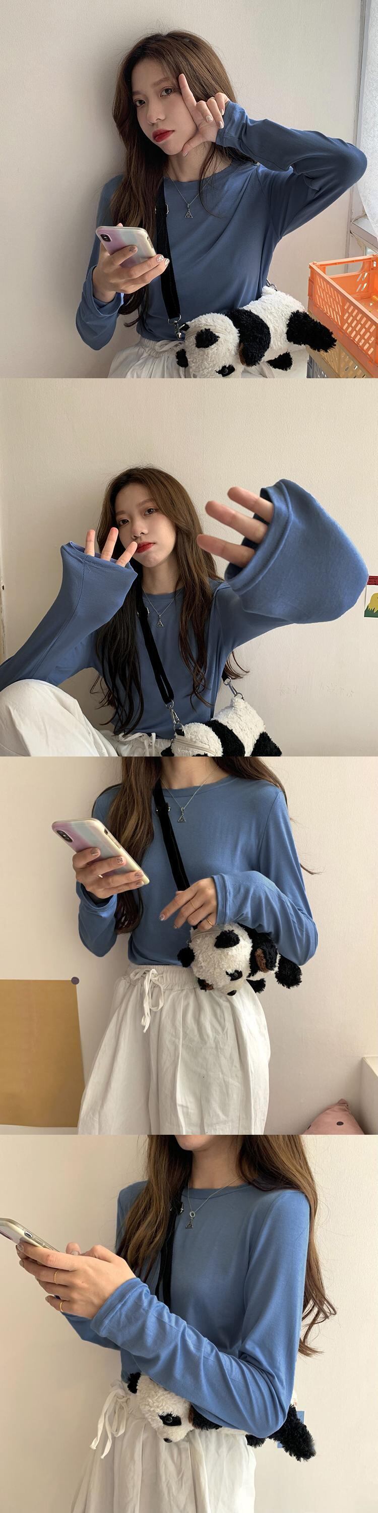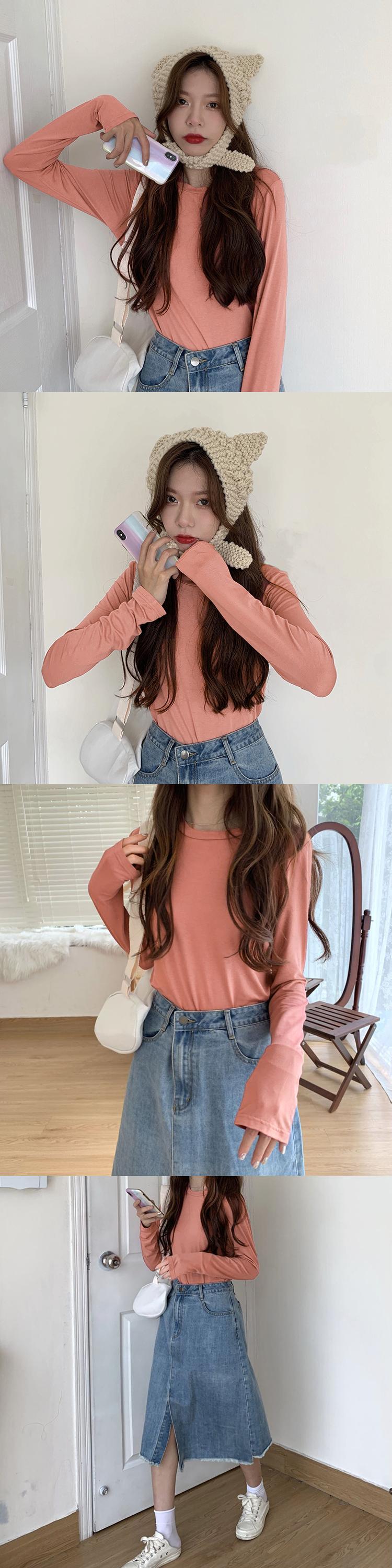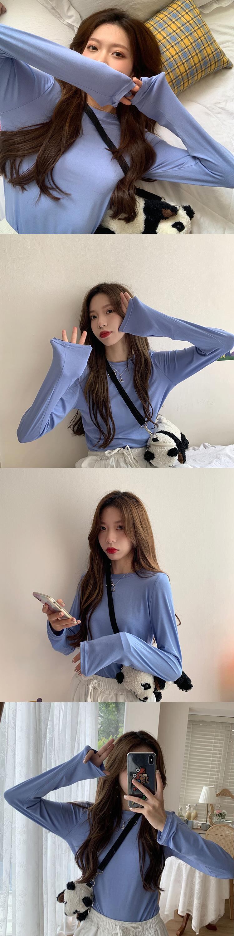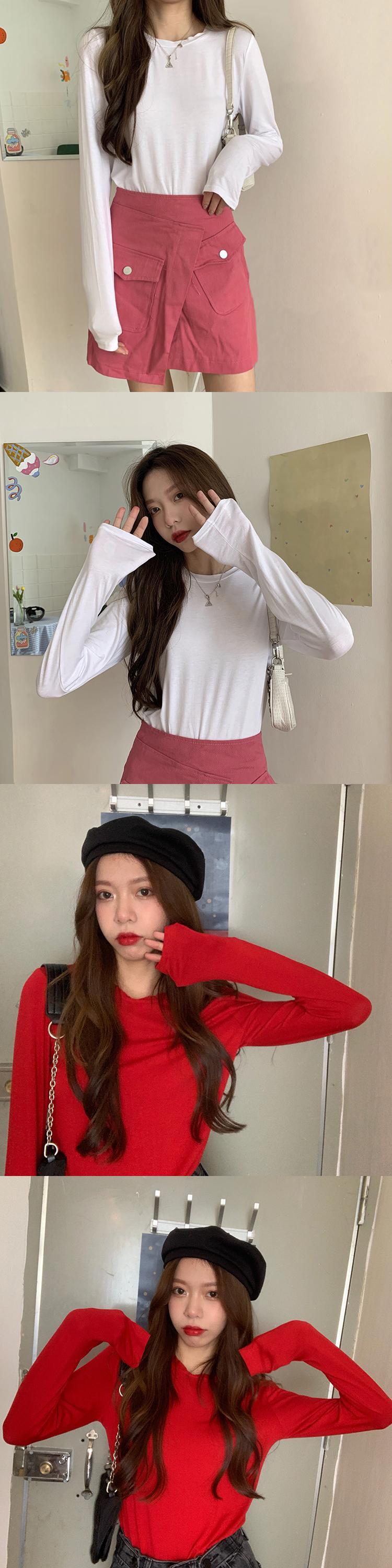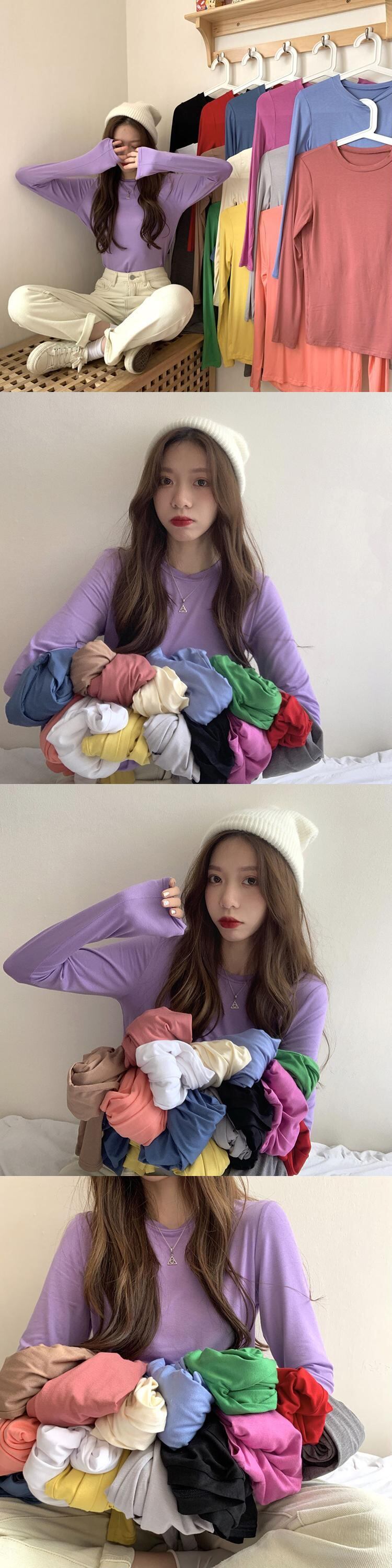ピュアカラーのボトミングシャツ2020年秋新しい長袖Tシャツの女性が折りたたまれて薄くて用途の広いミドル丈のトップインタイドを着用 ドラファッションホール12744893430