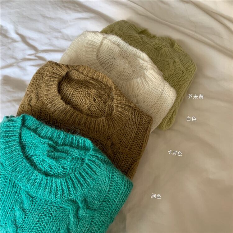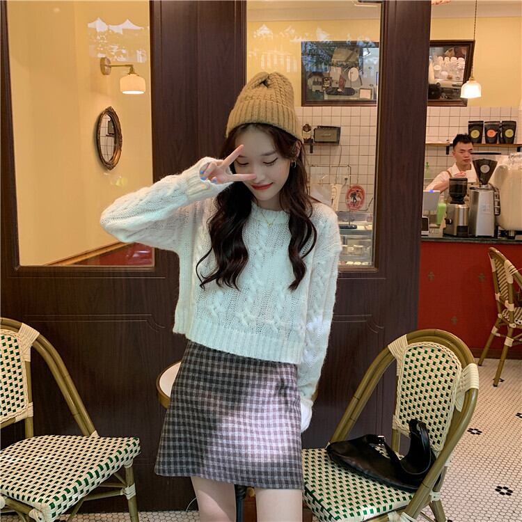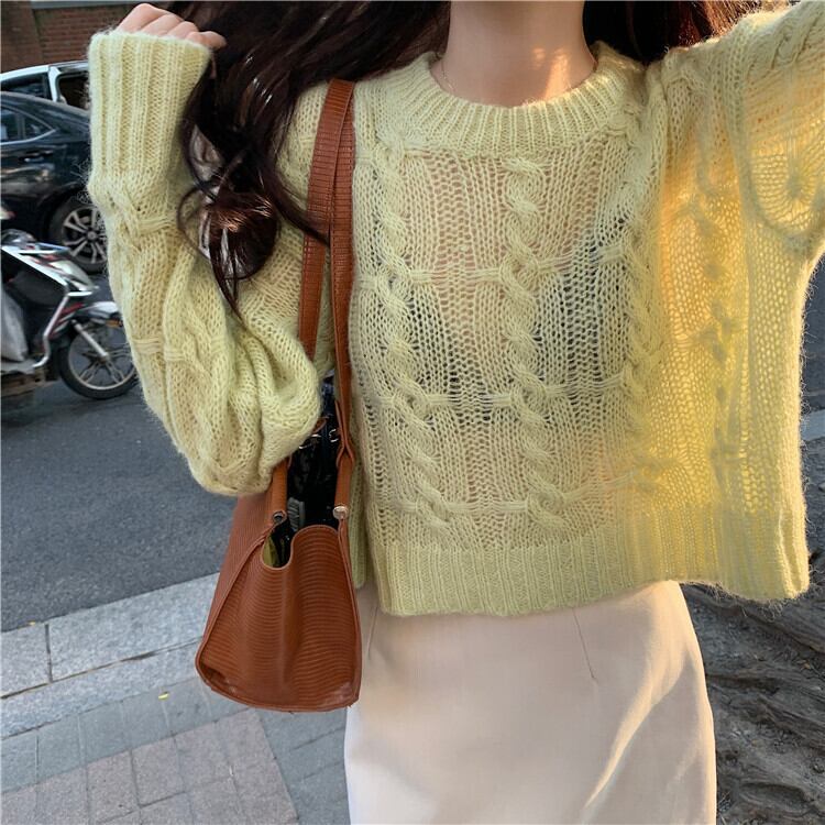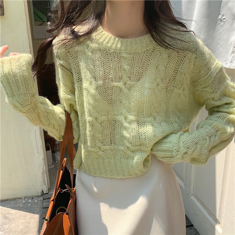薄いツイストプルオーバーセーター女性2020年秋新しいルーズで怠惰なショートニットセーター、インナージャケットとアウタージャケット ドラファッションホール65965507144