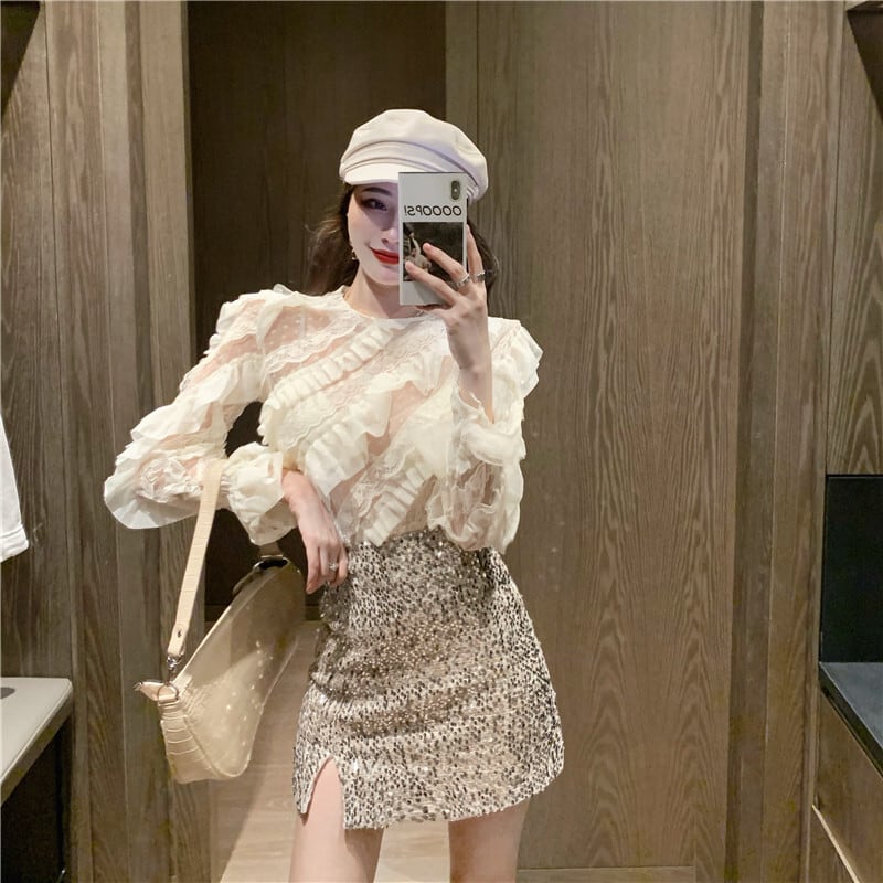 秋のスーツ女性スーパーフェアリーレースシャツトップバッグヒップスカートセクシースカート2020新しい洋風ツーピーススーツ ドラファッションホール22643837619