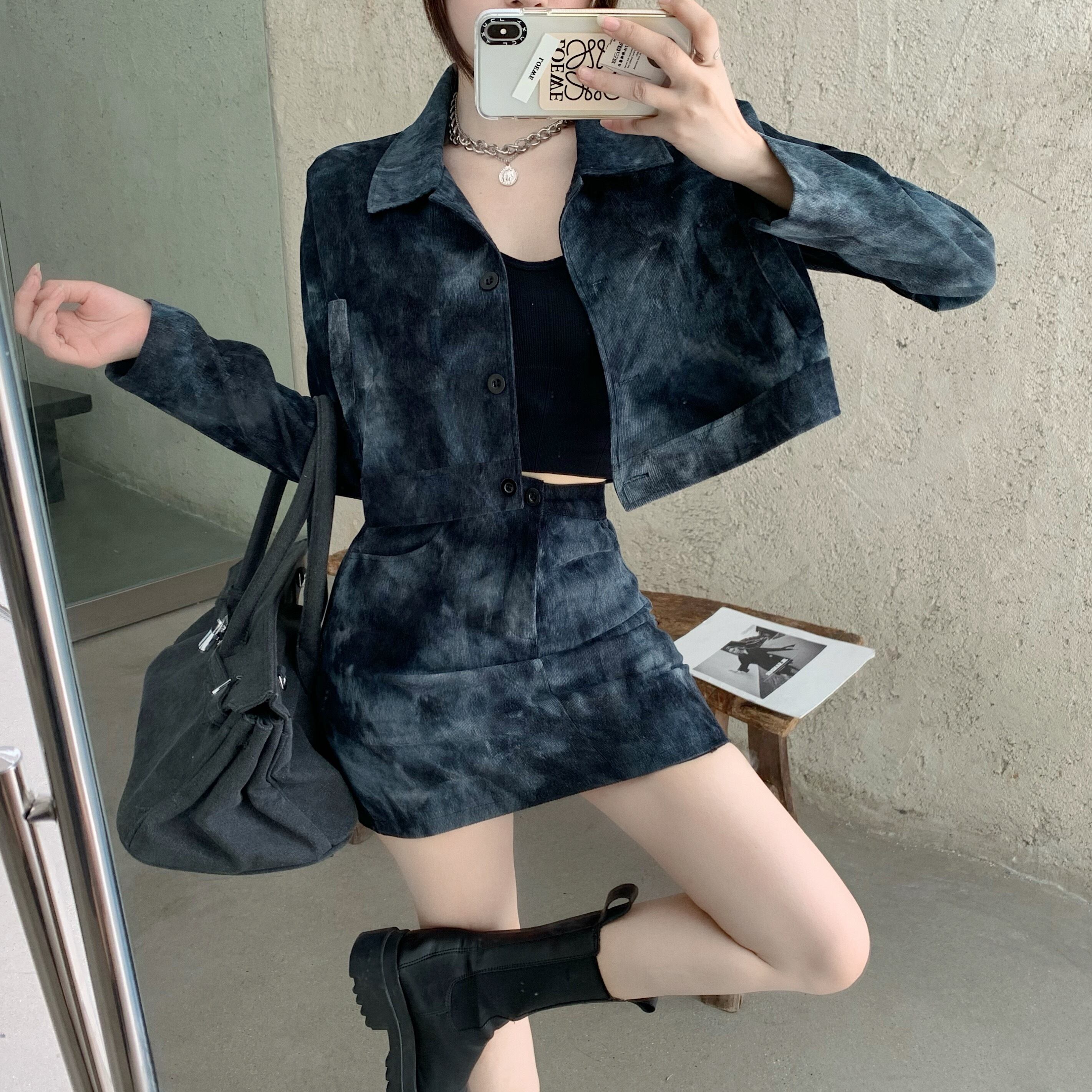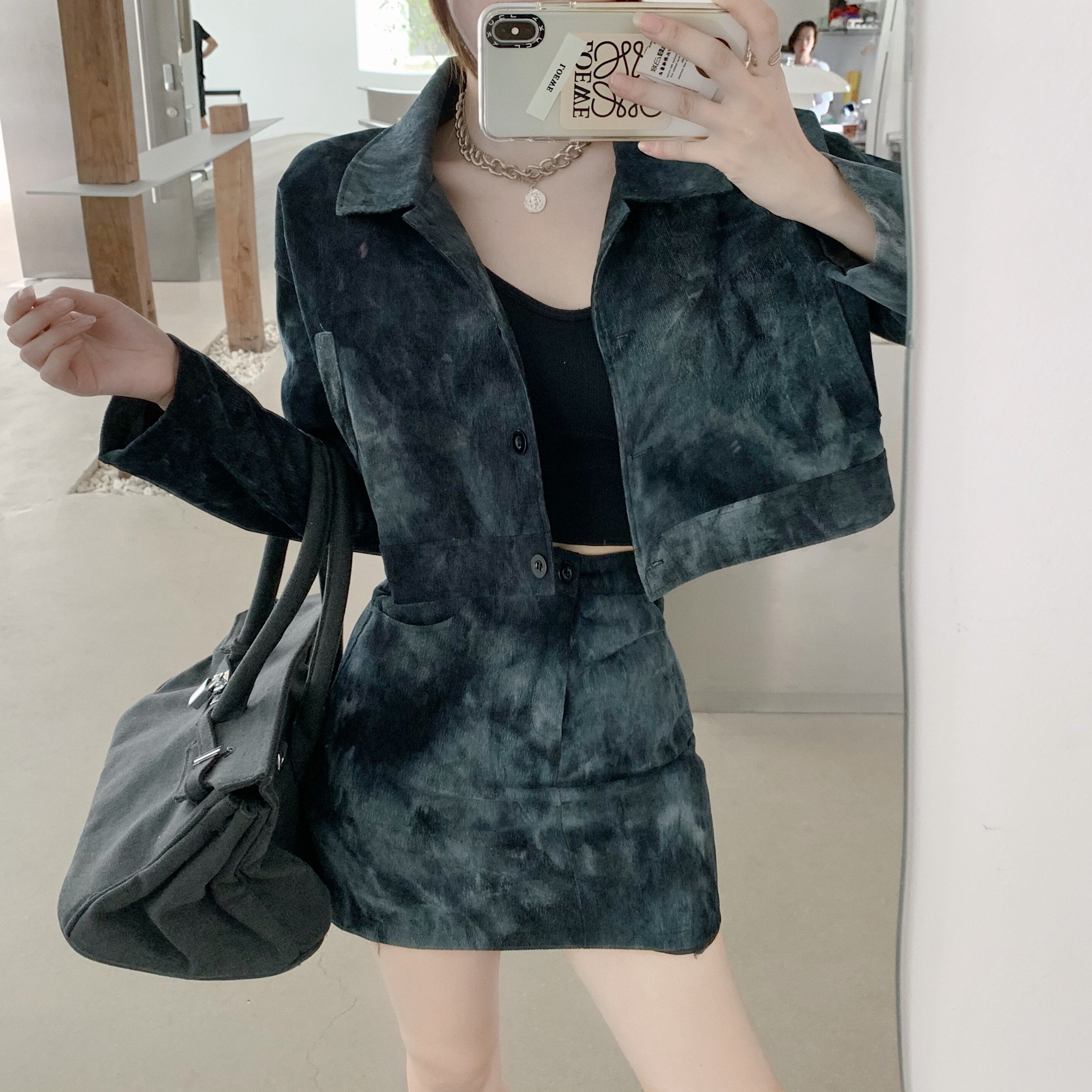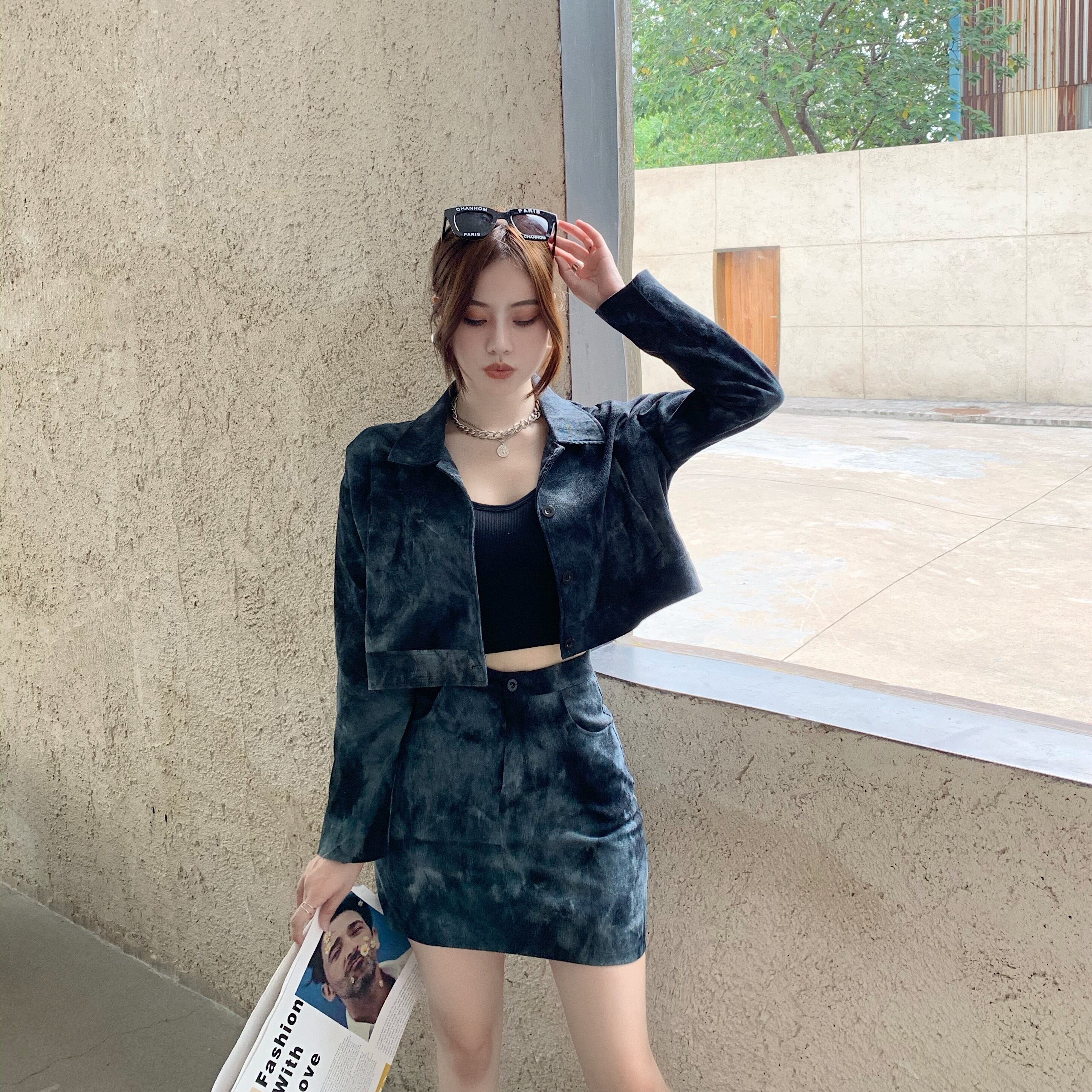 ネットレッド絞り染めフライドストリートツーピースセット2020年秋新作カジュアルファッションスーツ女性ジャケットジャケットバッグヒップスカート ドラファッションホール75177064869