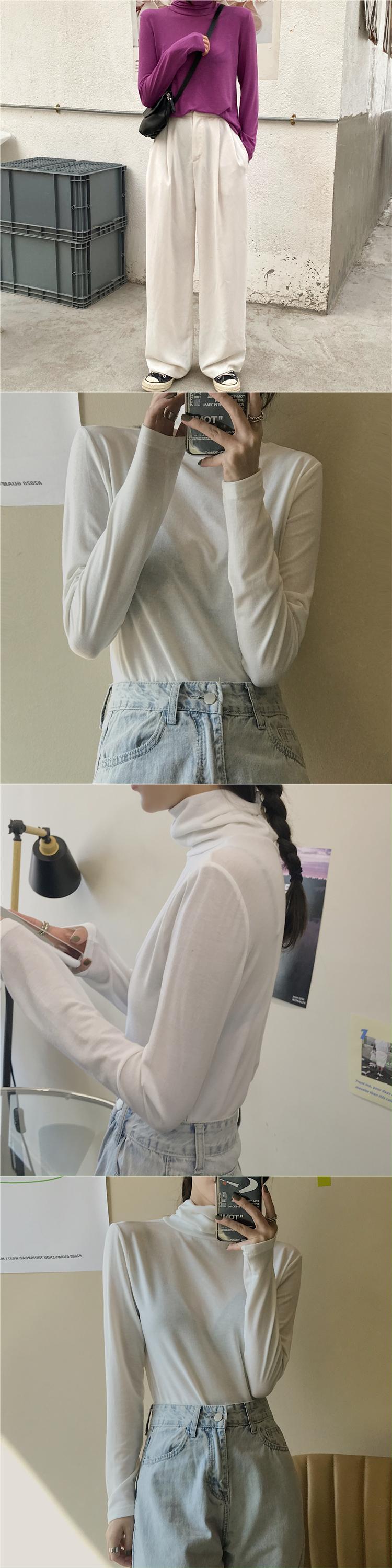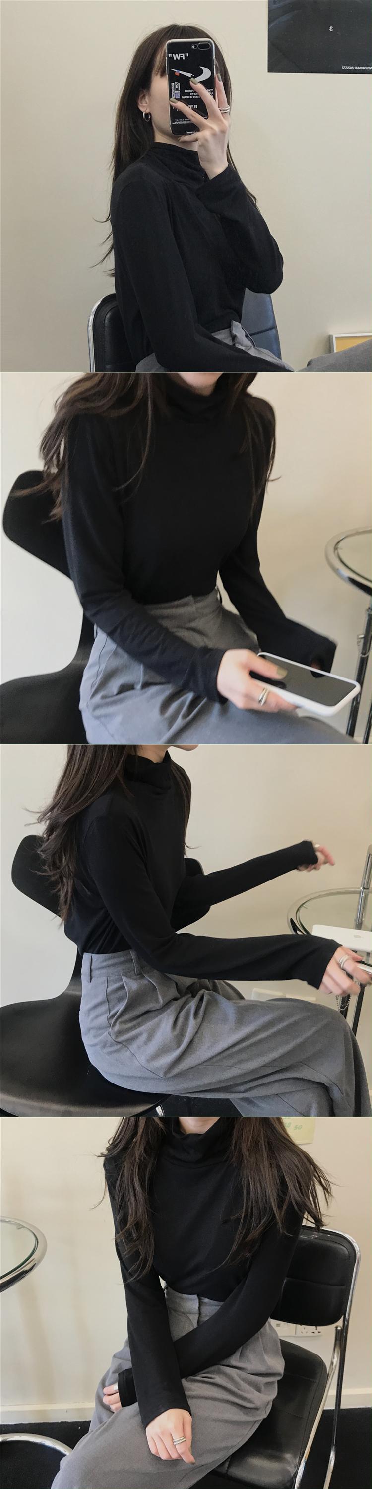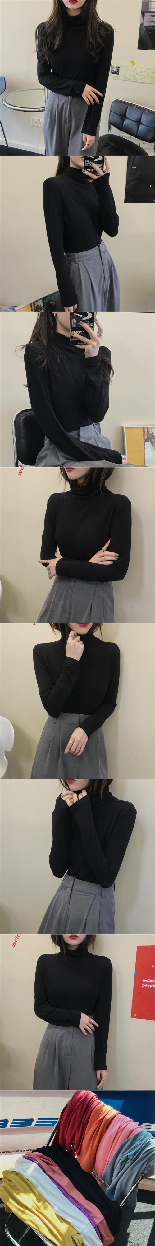秋の薄手のハイネックボトミングシャツ黒の長袖Tシャツ女性2020新しいスリムで薄いオールマッチトップイン ドラファッションホール24255197500