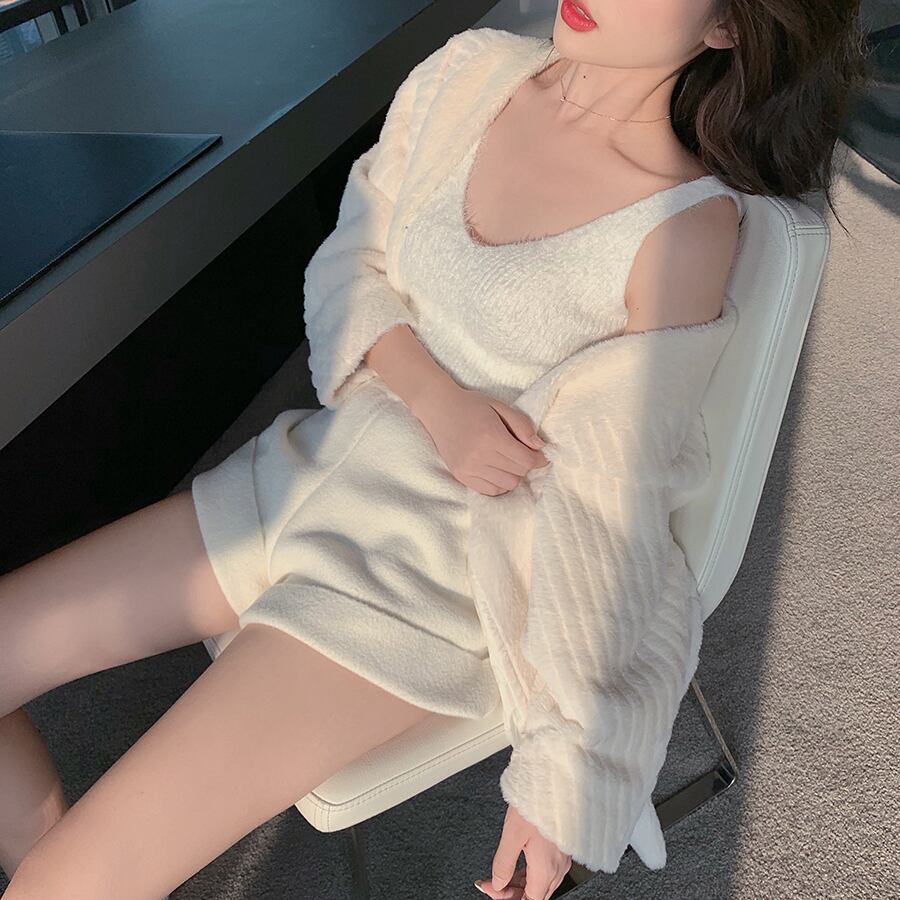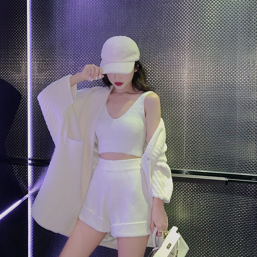 スリーピース2020年秋新しいネットレッドファッションスーツ女性の優しいセーターカーディガンジャケットニットベストショーツ ドラファッションホール55280995839