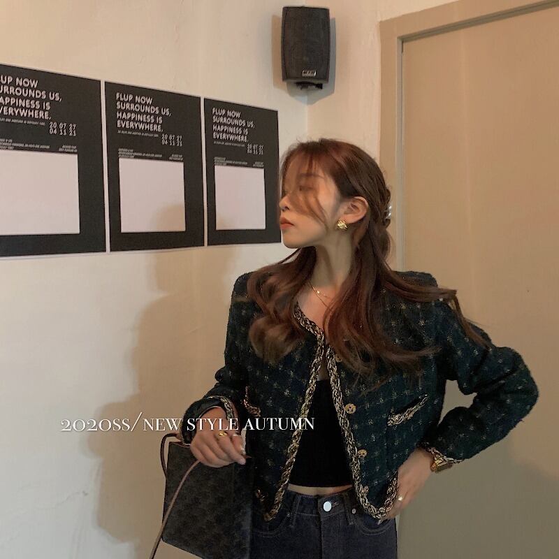 2020年秋新作ショートジャケットレディース長袖カーディガンネットレッドインスーパーファッションオールマッチライトマチュアトップ ドラファッションホール20297446949
