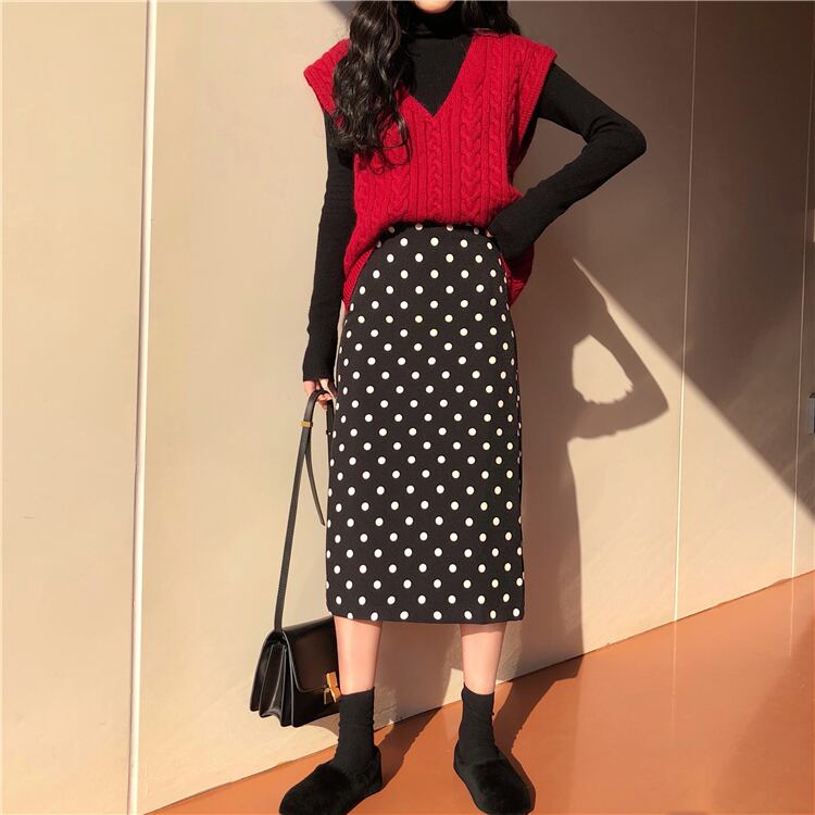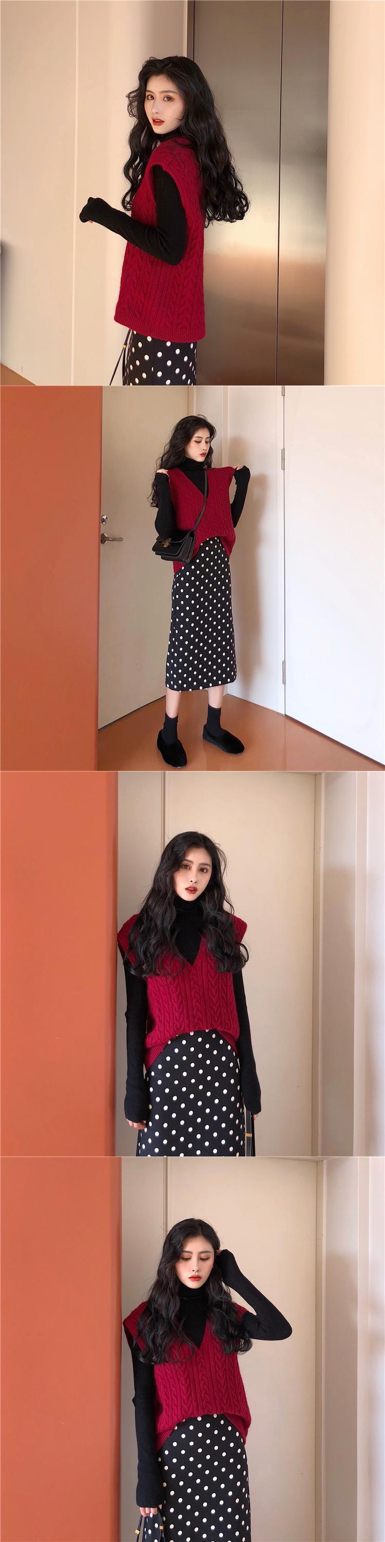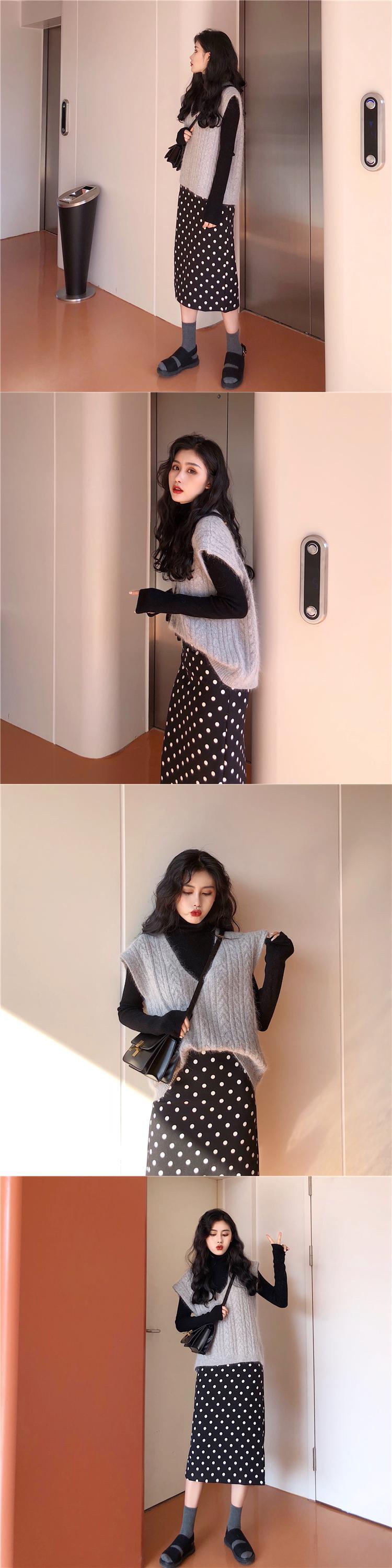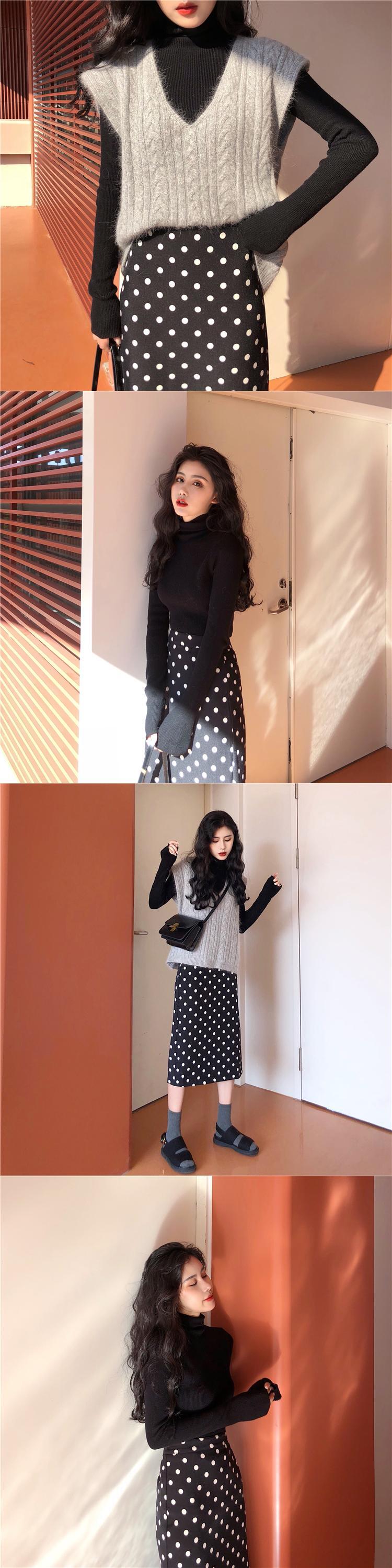 ネットセレブファッションスーツレディース2020年秋ニュースタイルアウターVネックセーターベストハイネックボトミングシャツスカート ドラファッションホール46808455778