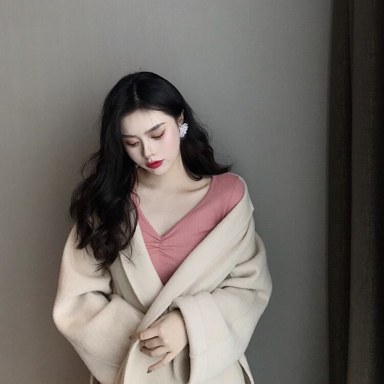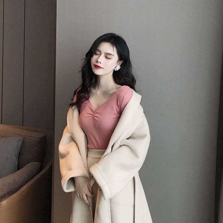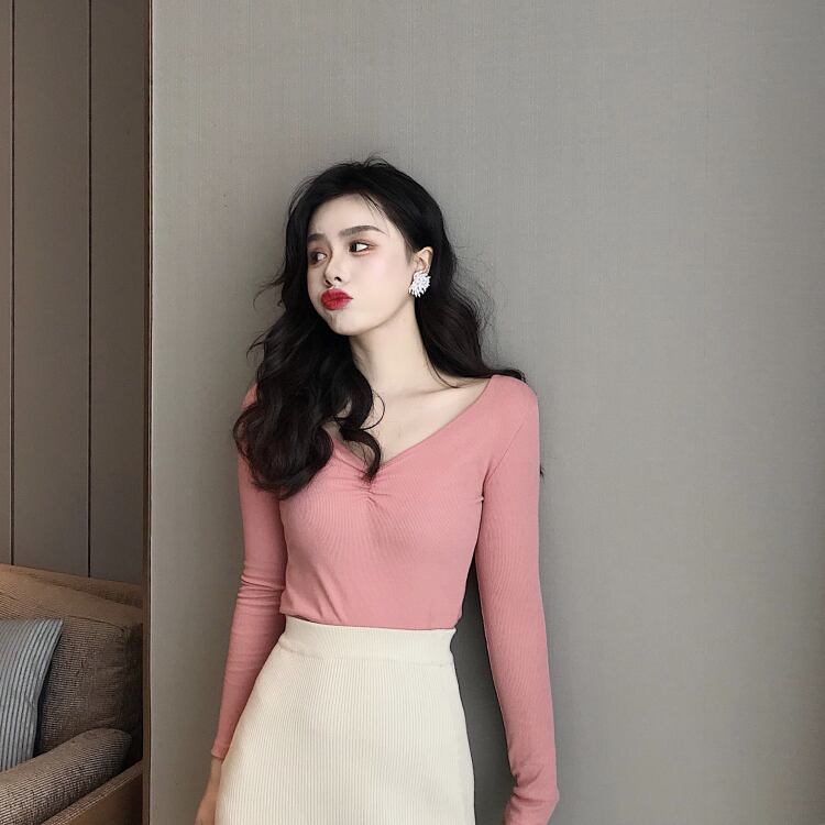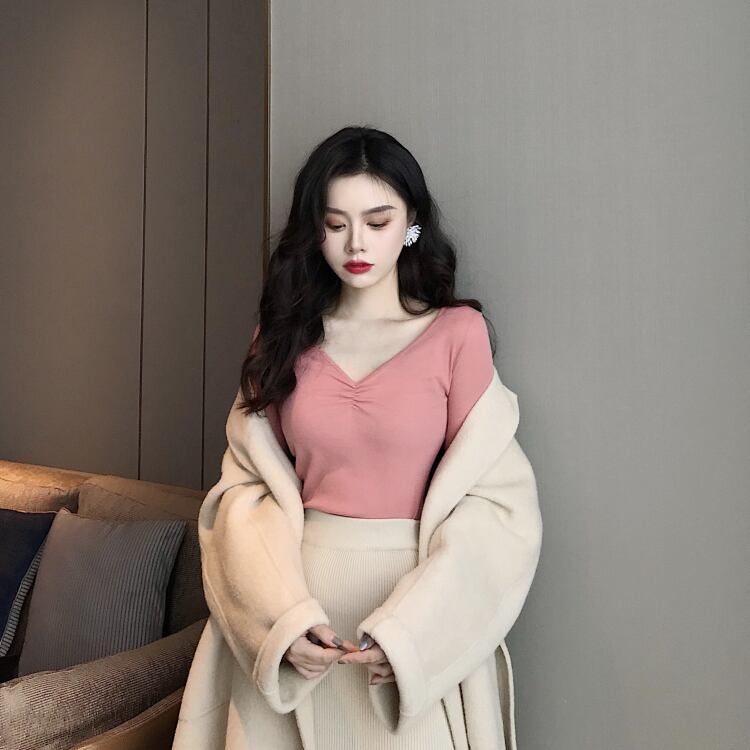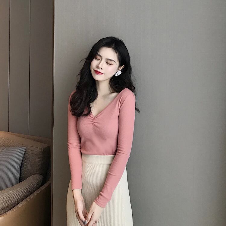 Vネックブラック長袖Tシャツレディース2020年秋新作ニットボトミングシャツスリムスリミングオールマッチトップインタイド ドラファッションホール88678914316