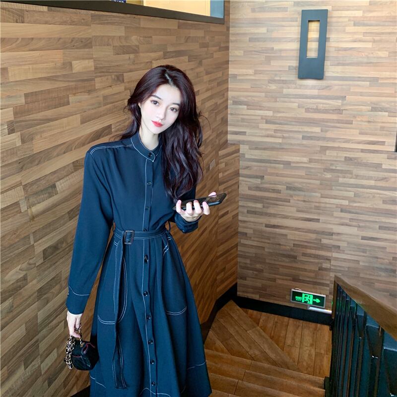 ライトマチュアスタイル、ライトラグジュアリーレディース気質長袖ドレス女神ファン2020年秋新作ロングスリムスカート ドラファッションホール12336620187