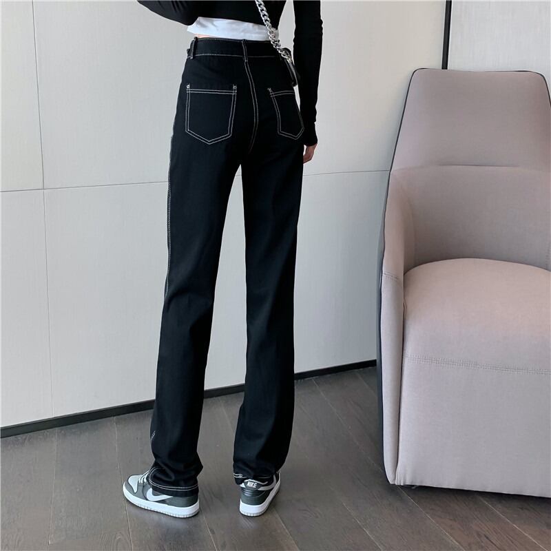 秋の新作パンツ女性ブラックジーンズハイウエストスリムストレートレッグパンツルーズワイドレッグパンツドレープデニムパンツ ドラファッションホール53333853486
