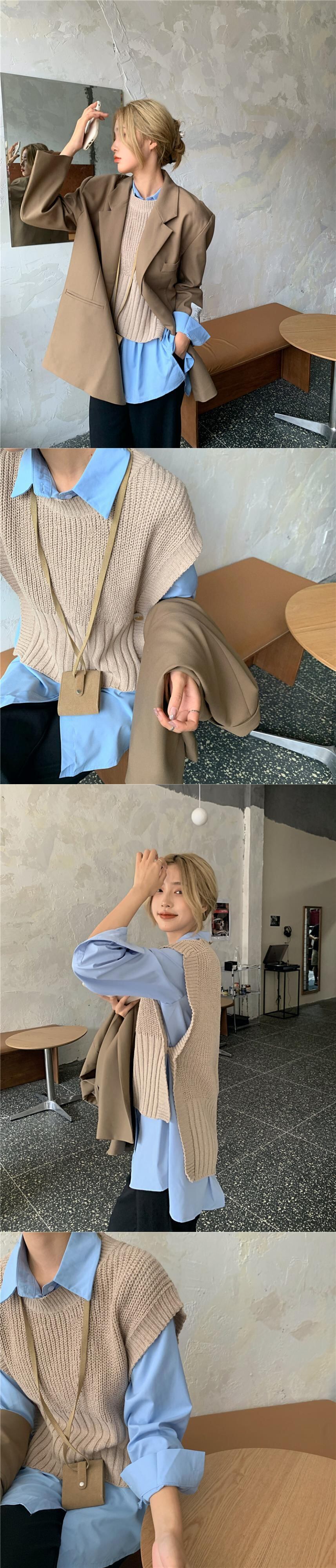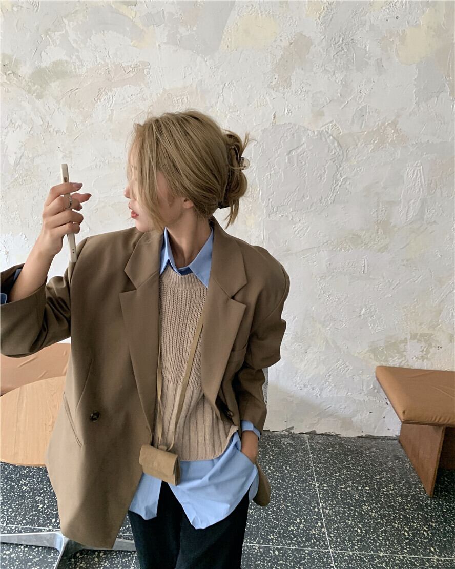 2020年秋新しいファッションスーツ女性フライドストリートルーズスーツデザインセンスニッチシャツスタックニットベスト ドラファッションホール36065400609