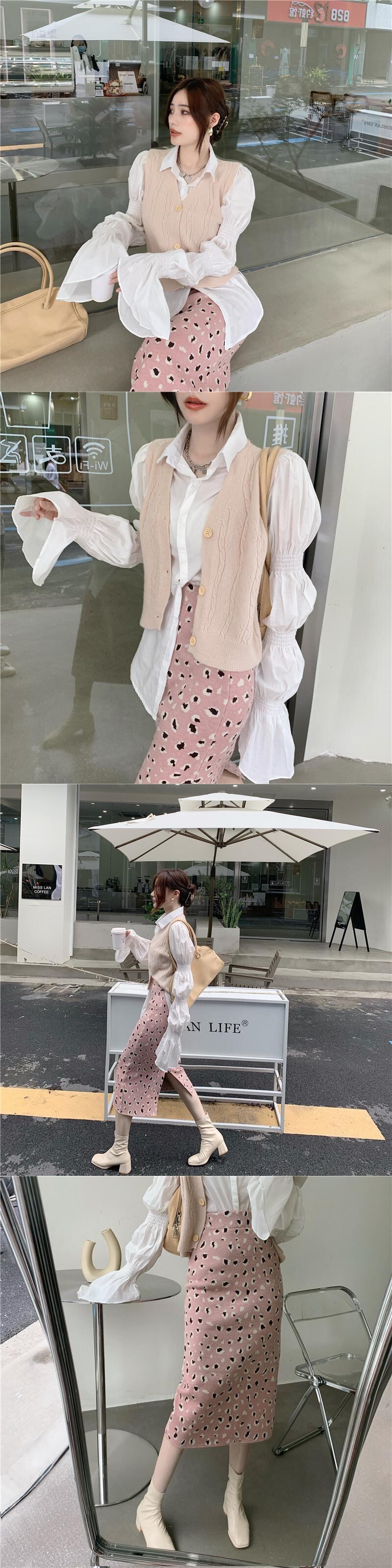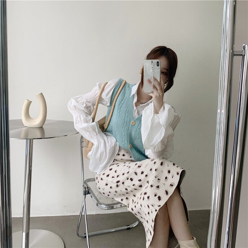 2020年秋新作スリーピースニットベストパフスリーブシャツニットスカートネットレッドファッションスーツレディース ドラファッションホール65305629841
