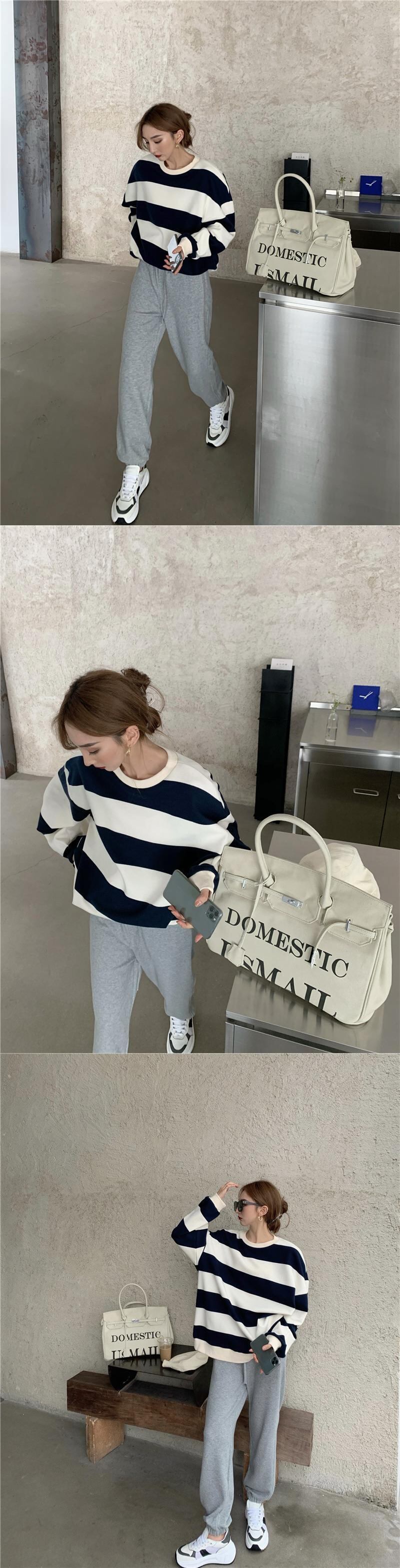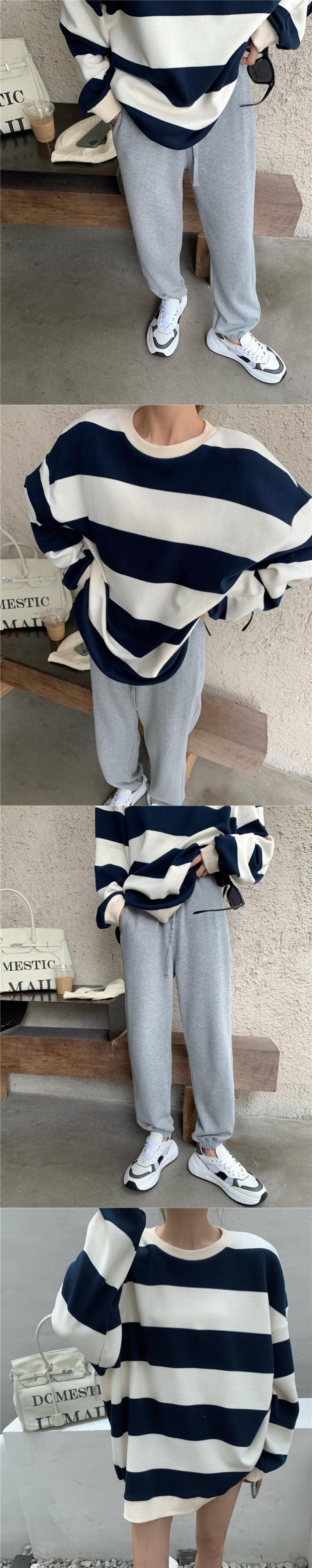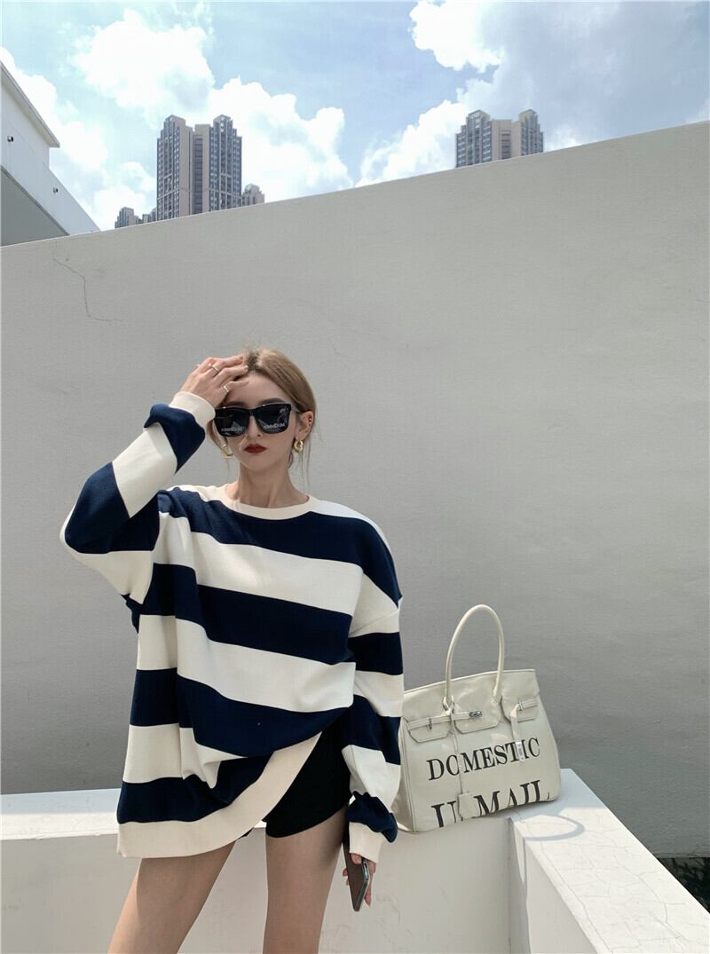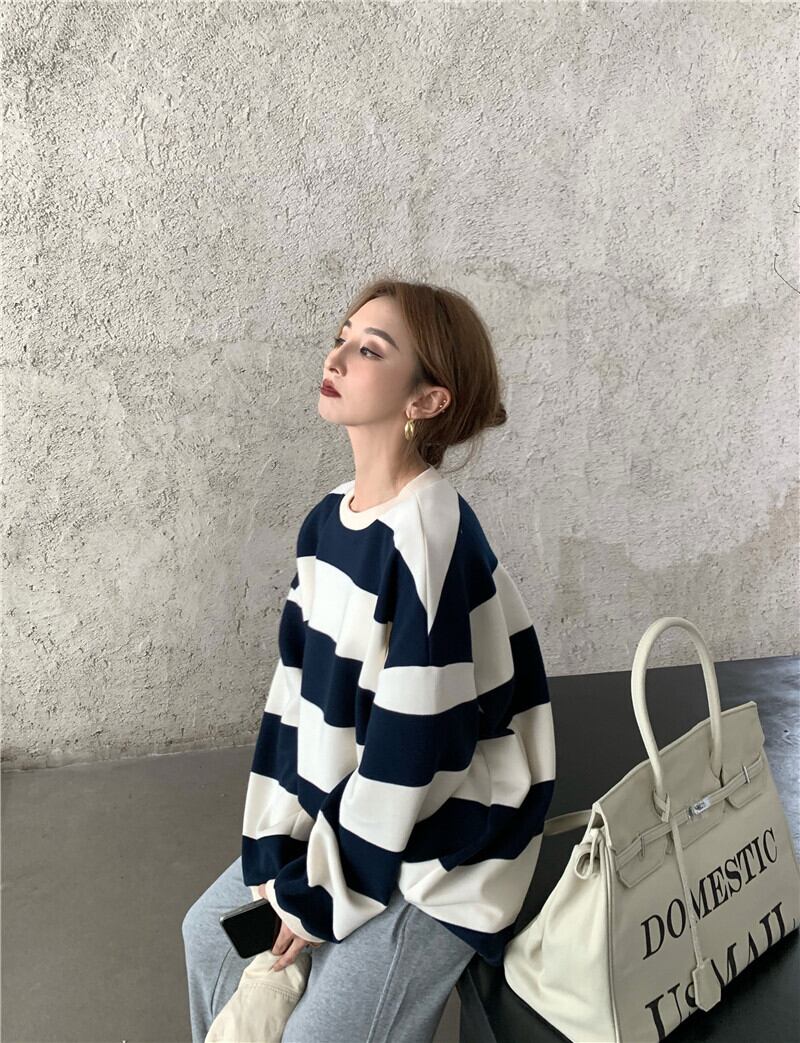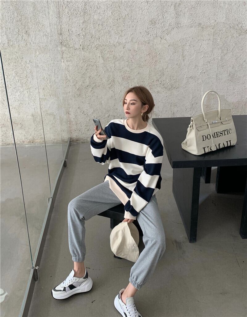 ファッションスーツレディース2020年秋新バージョンのルーズストライププルオーバーセータースリムグレーパンツ ドラファッションホール3814913463