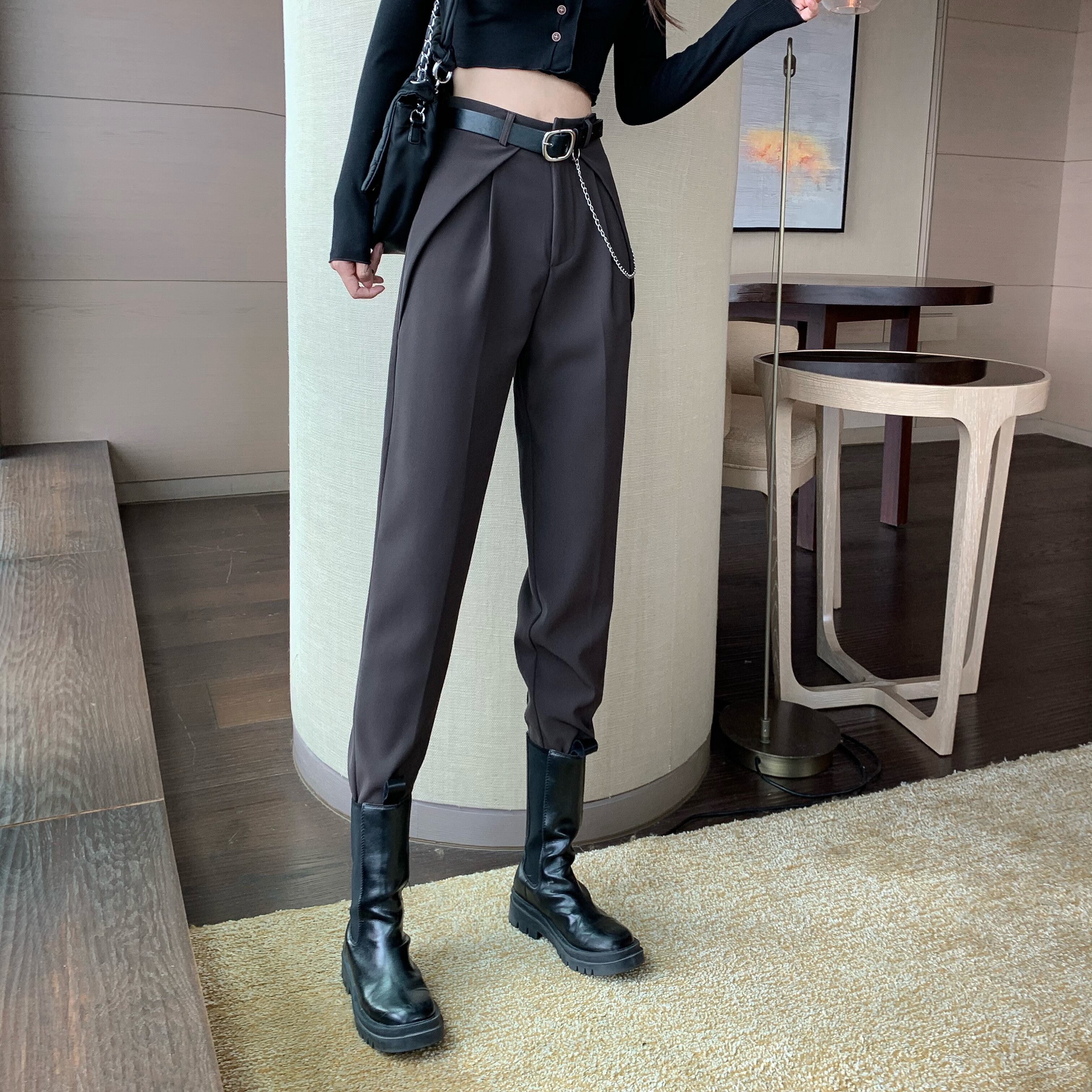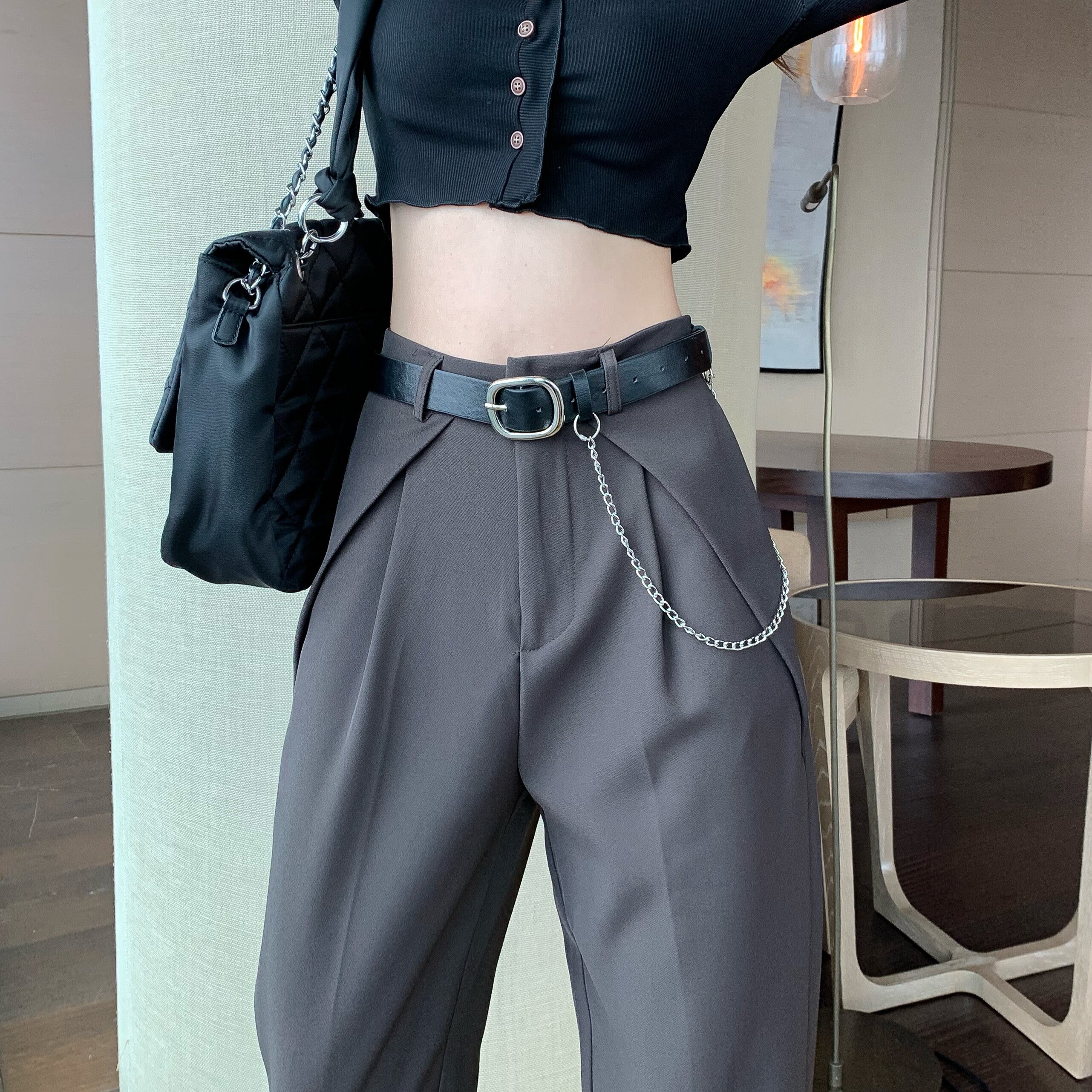 2020年秋冬新作ハイウエストスリムスーツパンツレディースストレートカジュアルパンツルーズワイドレッグパンツワイルドインタイド ドラファッションホール37347939821