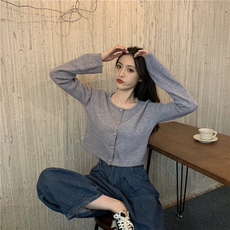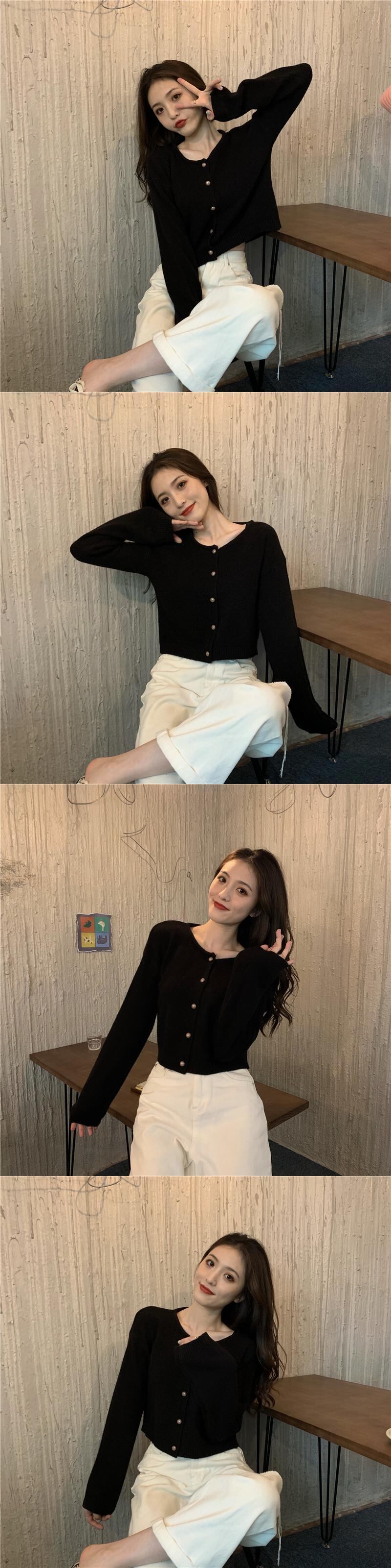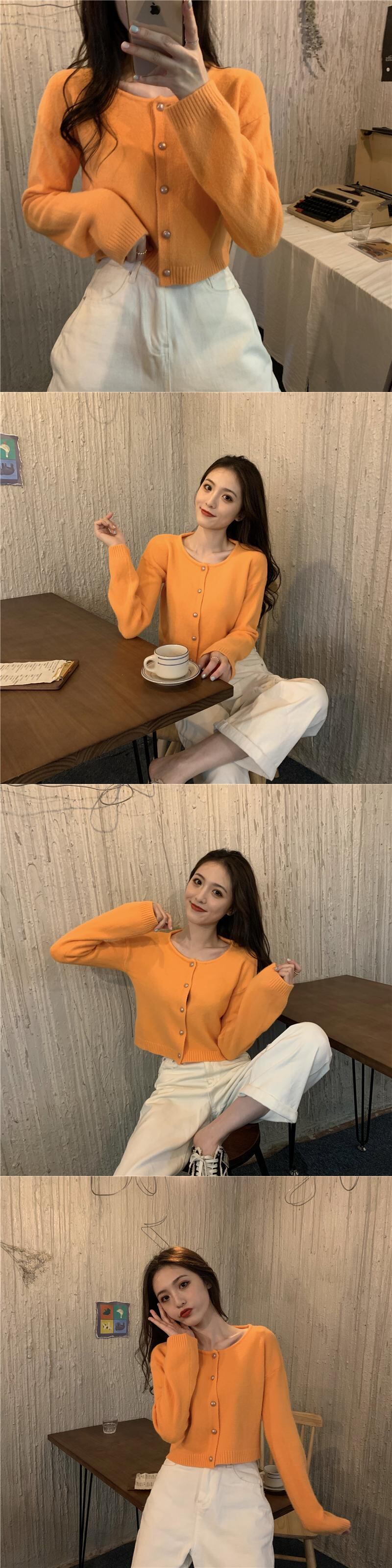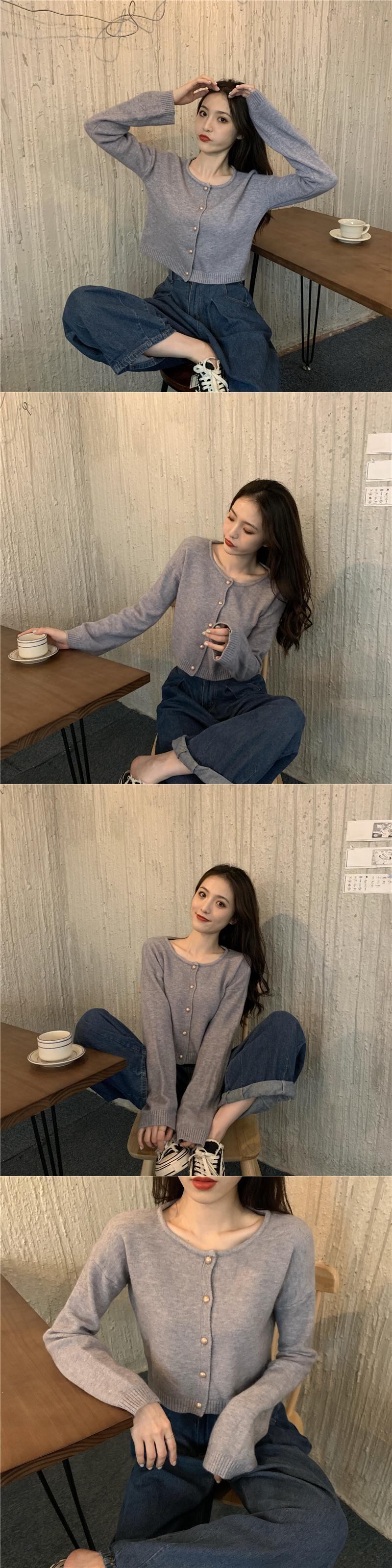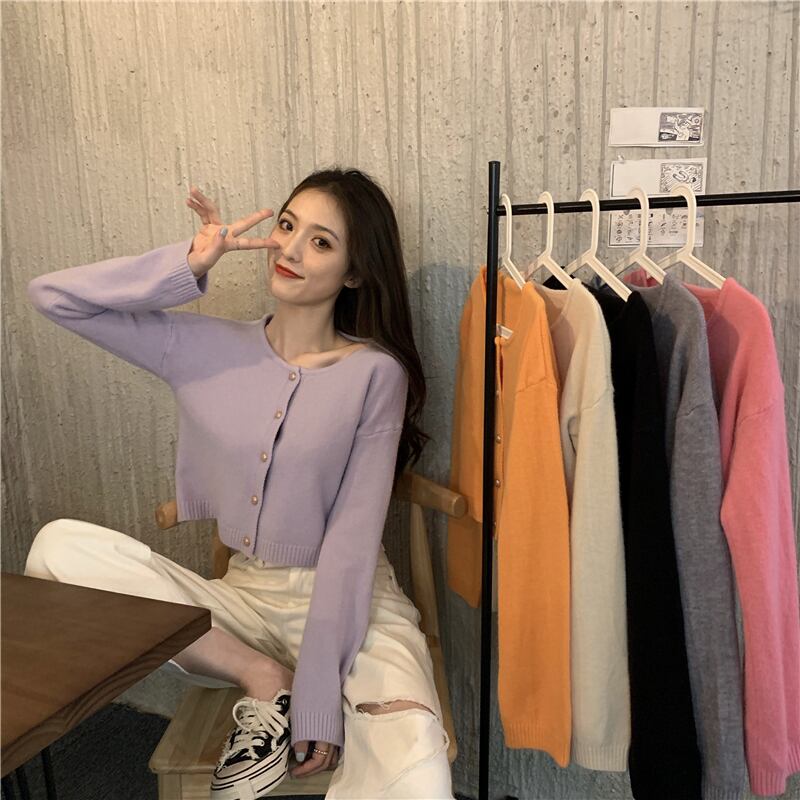 2020年秋ニュースタイルショートスタイルファッションワイルドラウンドネックシンプルシングルブレストニットセーター女性長袖 ドラファッションホール29183791092