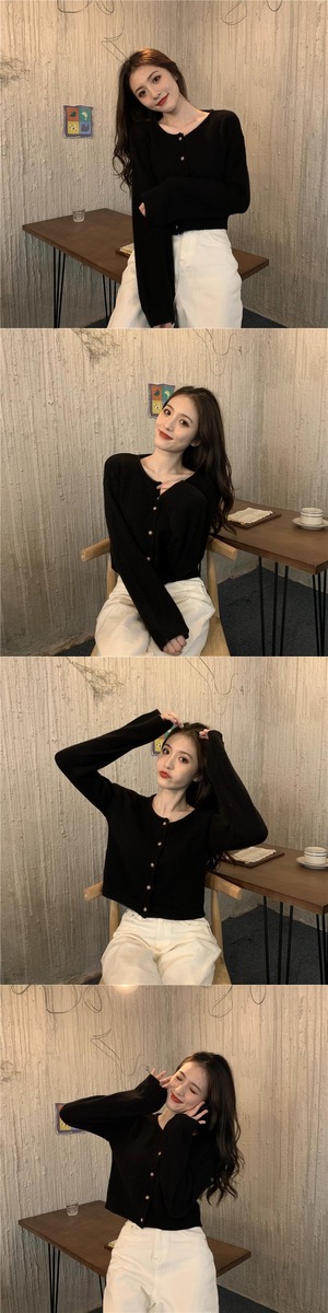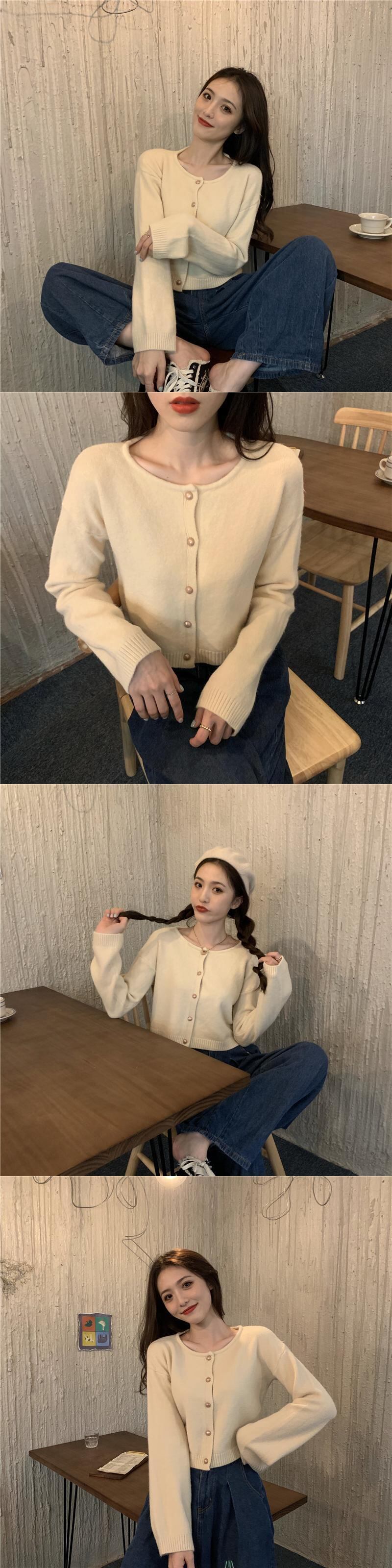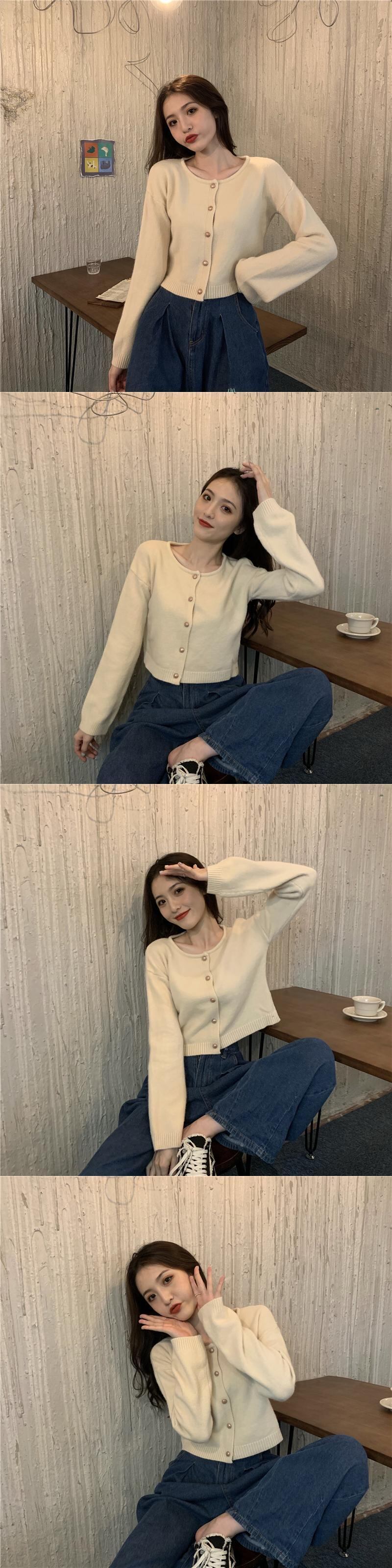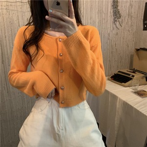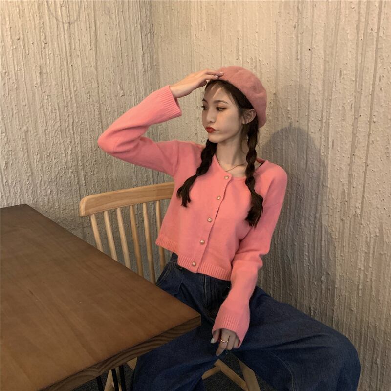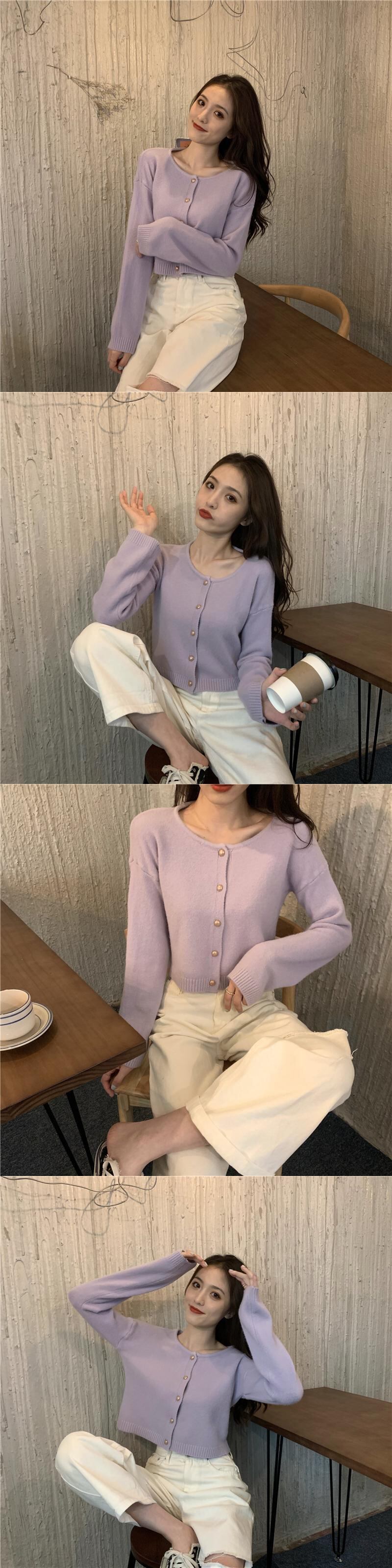 2020年秋ニュースタイルショートスタイルファッションワイルドラウンドネックシンプルシングルブレストニットセーター女性長袖 ドラファッションホール29183791092