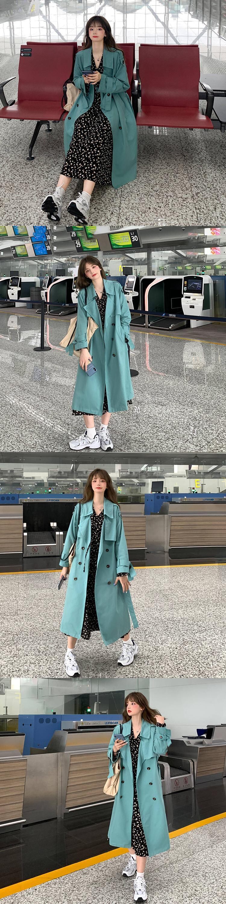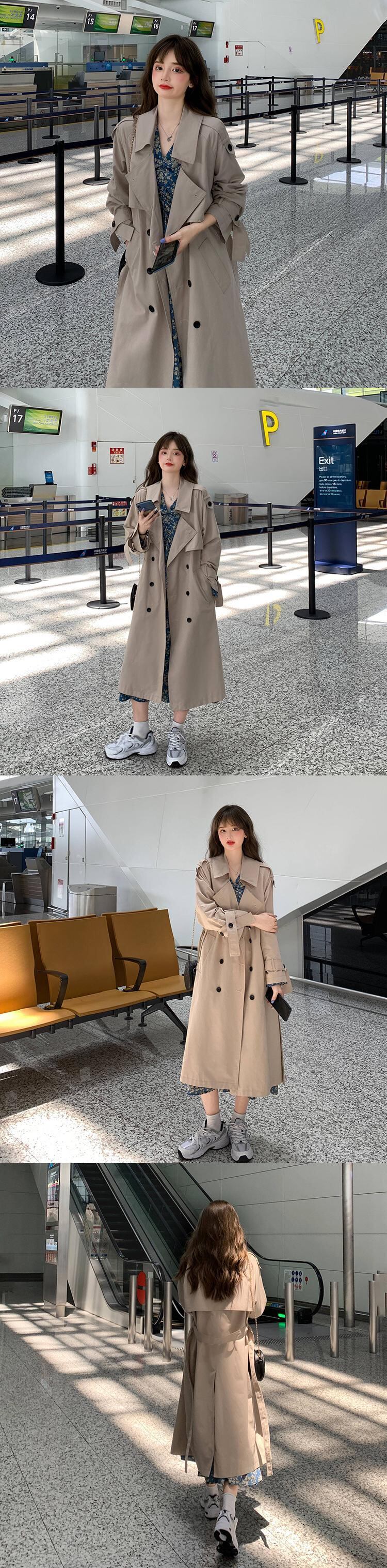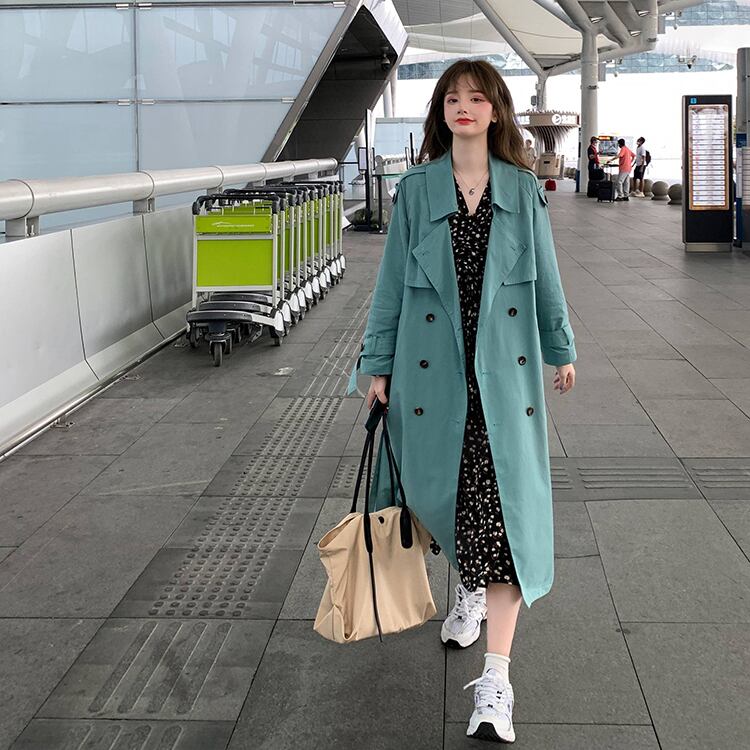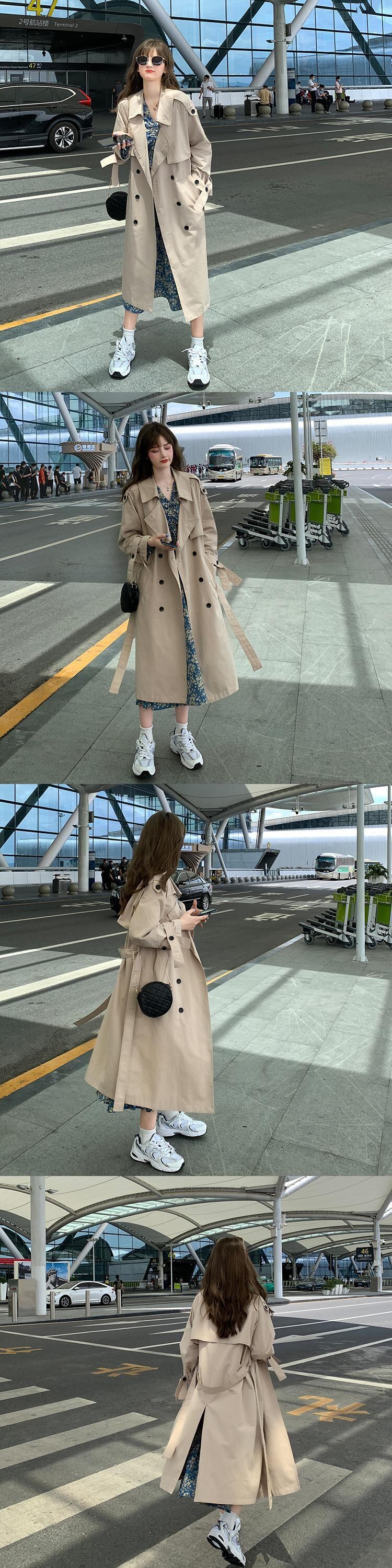 オールマッチ膝丈ロングネットレッドスモールウインドブレーカージャケット女性2020年秋冬新作ダブルブレストコート ドラファッションホール11175962182