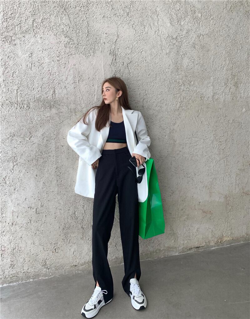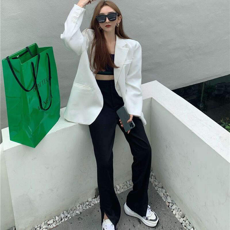 ネットレッドファッションスーツレディース2020年秋新作ルーズスーツジャケットカジュアルスプリットワイドレッグパンツツーピーストレンド ドラファッションホール90256612693