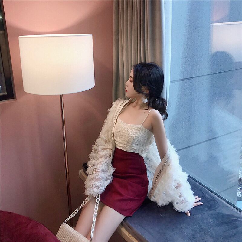 スリーピース2020年秋ニューネットレッドファッションスーツレディースホロージャケットキャミソールバッグヒップスカートスカート ドラファッションホール88546664863
