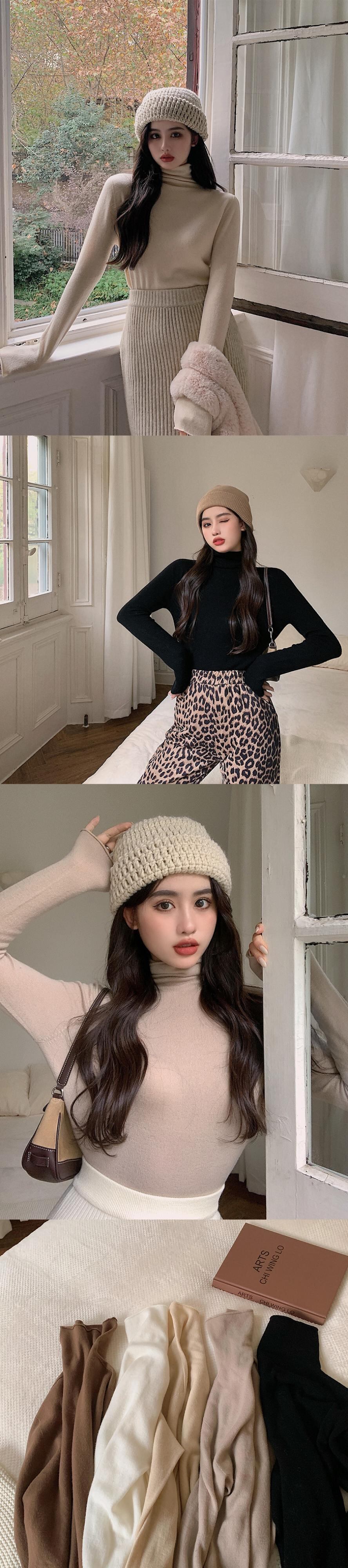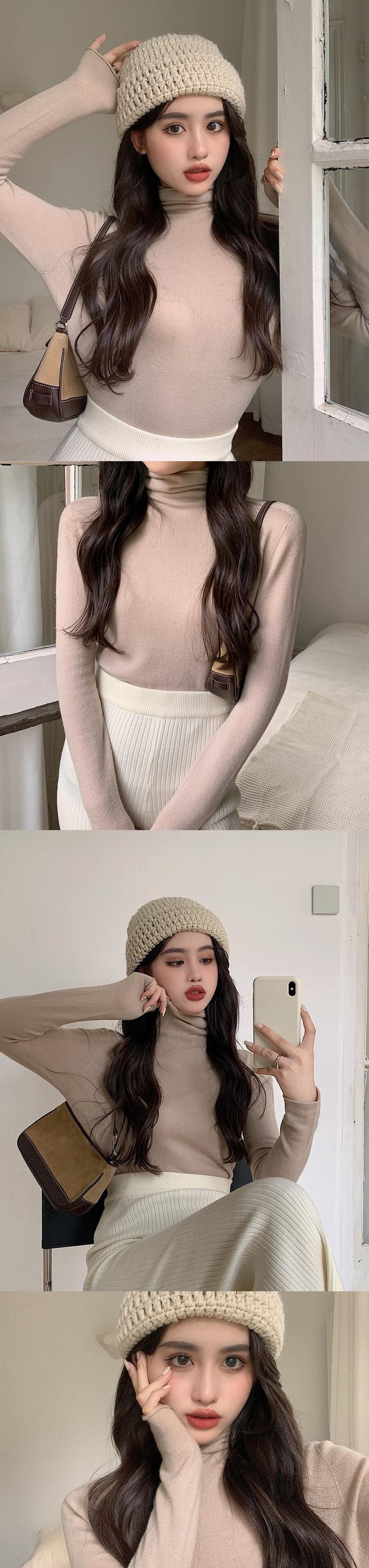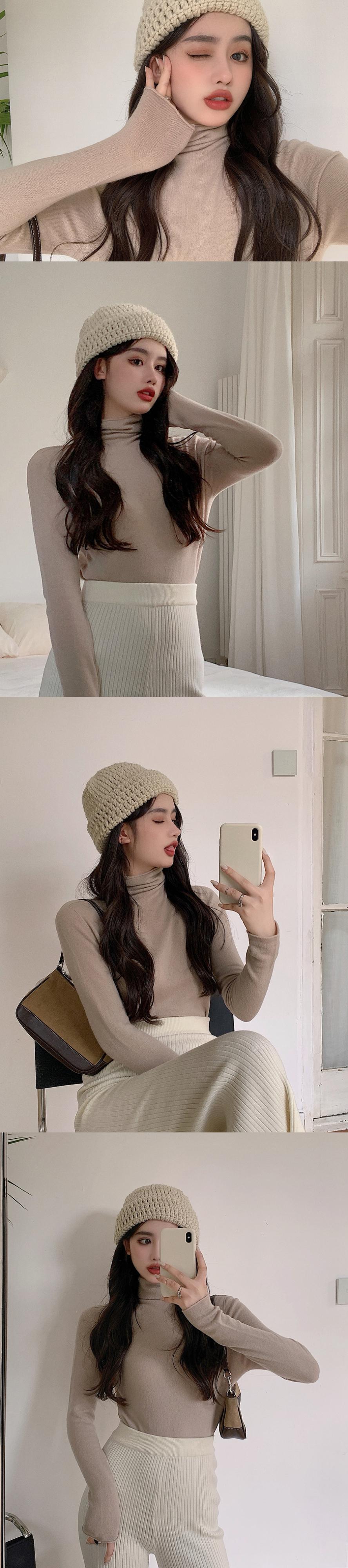 -ネックオールマッチ無地ボトミングシャツ女性の2020年秋冬新作長袖Tシャツスリムスリミングウォームニットトップス ドラファッションホール34668301090