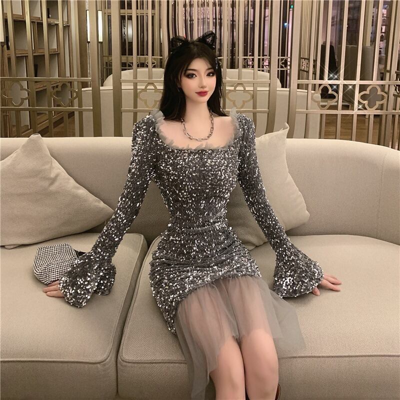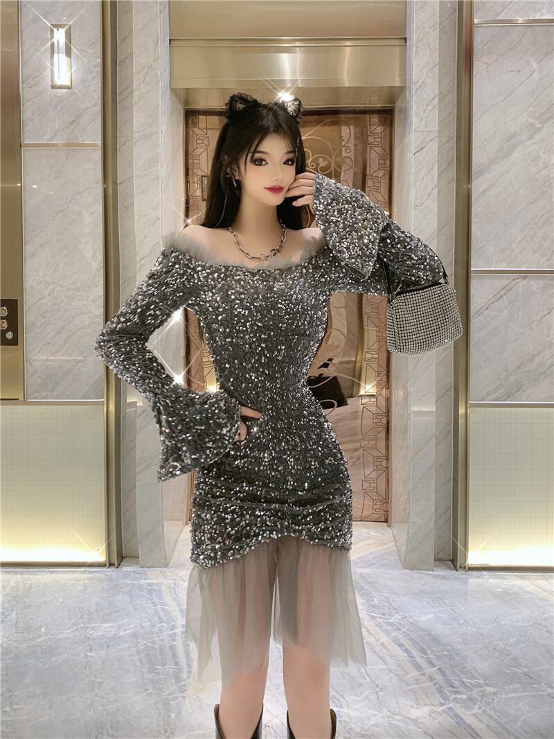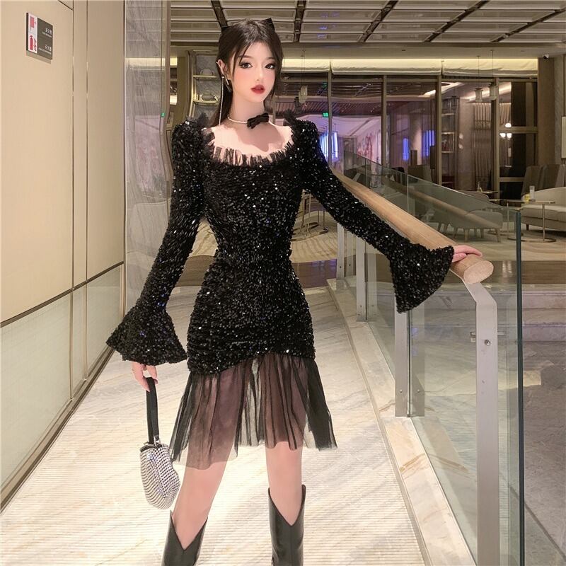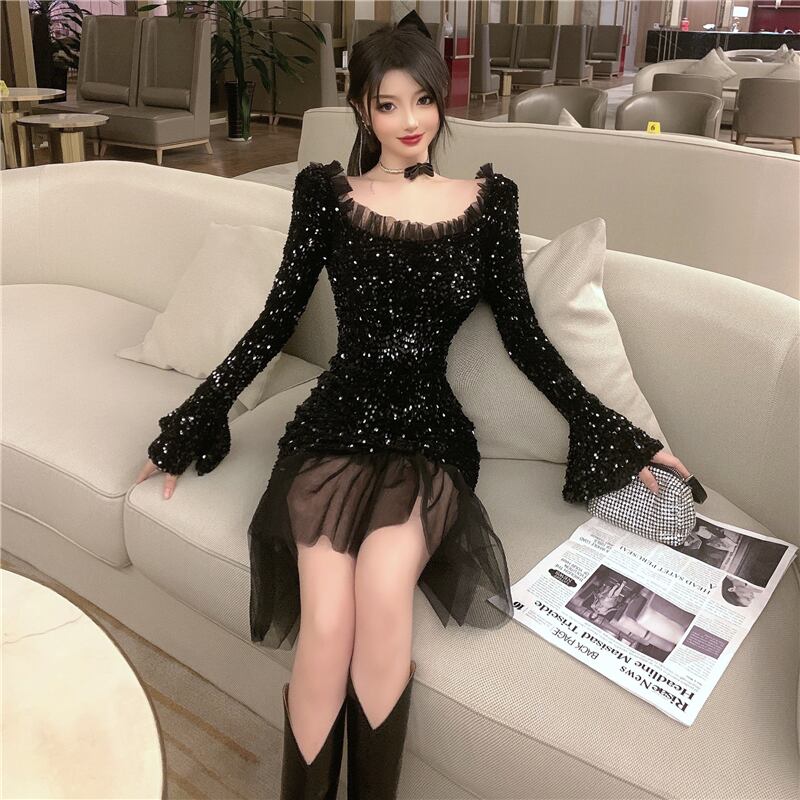 スリーブメッシュスタイルハイウェストウェストプリーツドレス レディース オータム 秋物 ウィンター 冬物 ドラファッションホール97080880332