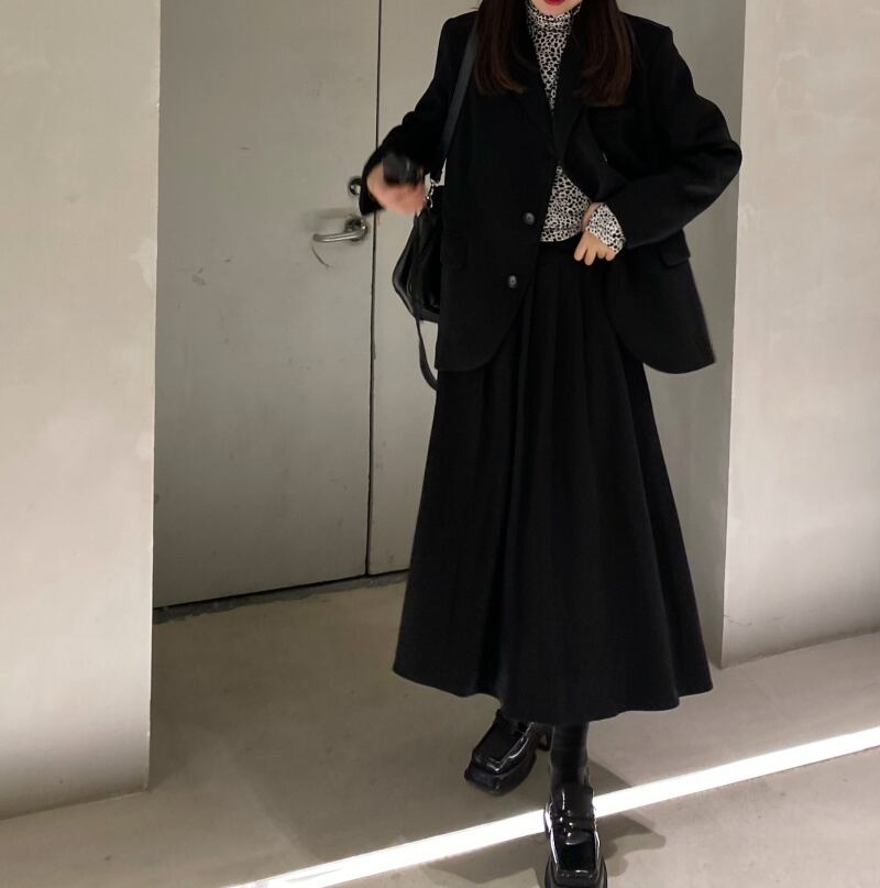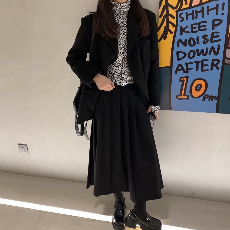 スタイルルーズブレザー レディースオータムウィンターハイウェストウェストプリーツスカート レオパードプリント柄 秋物 冬物 ドラファッションホール38520416135