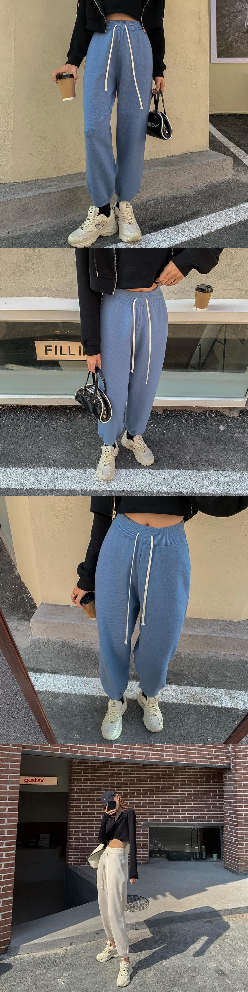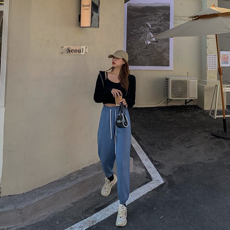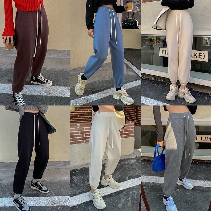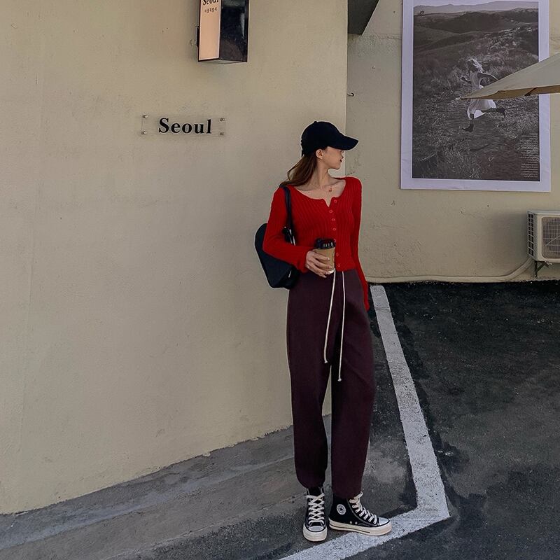 ベルベットカジュアルパンツ オータムウィンタースタンダードハイウェストウェストニットルーズ レトロ 秋物 冬物 ドラファッションホール24077314207