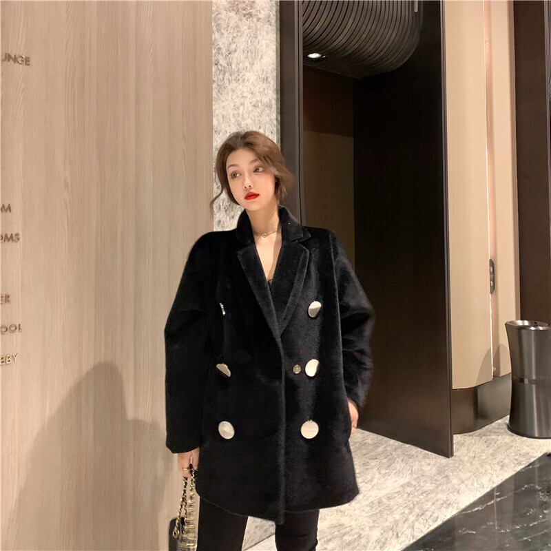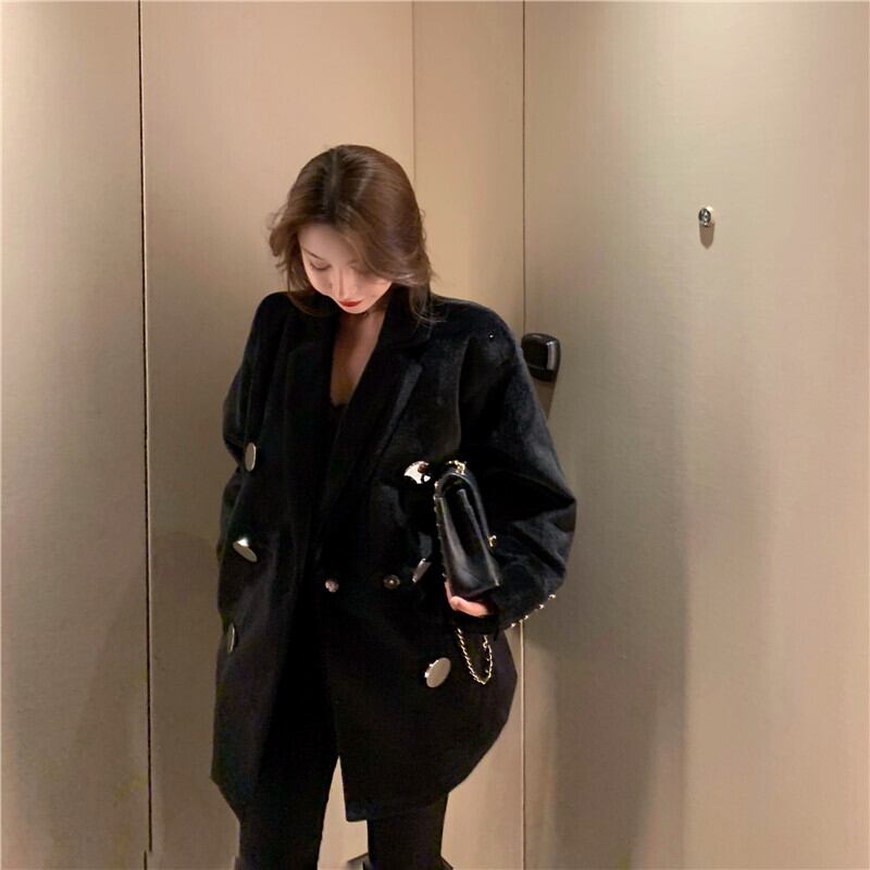 コート オータムウィンタースタイルルーズスタンダードブラック レトロ 秋物 冬物 ドラファッションホール70619996878