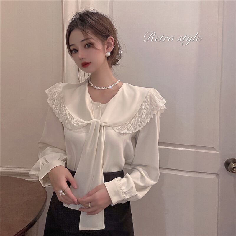 スタンダードレースホワイトシャツ レディースオータムウィンターブラックドレス レトロ 秋物 冬物 スクウェア ドラファッションホール91389083796