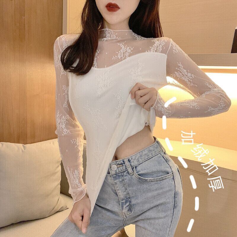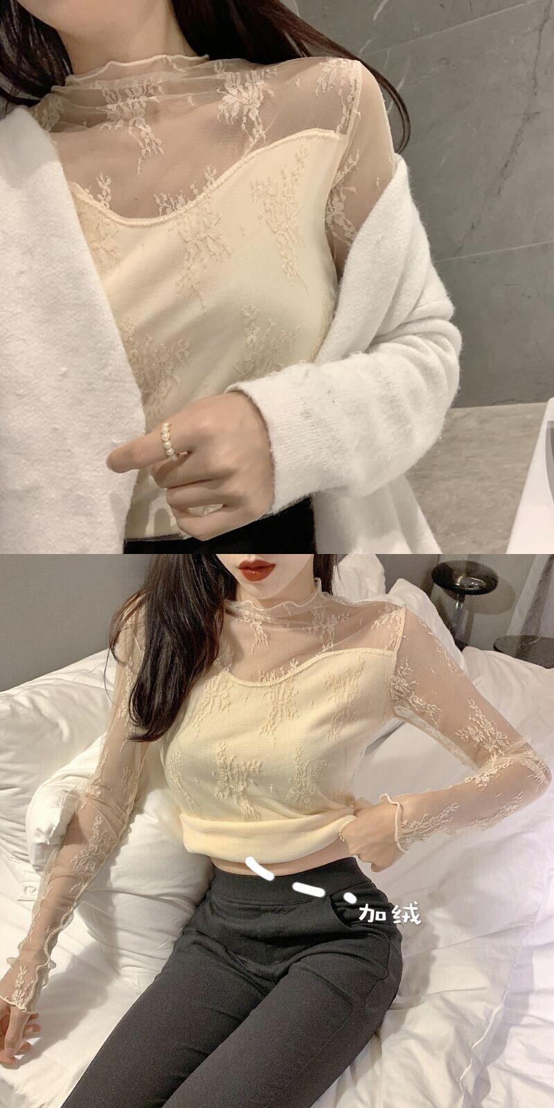 レースベルベットシャツ オータムウィンタースタイル薄手トップス ロング 秋物 冬物 ドラファッションホール98119564607