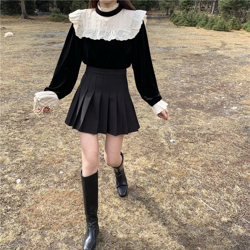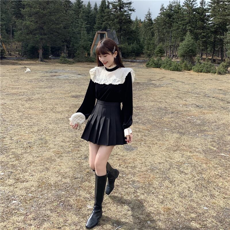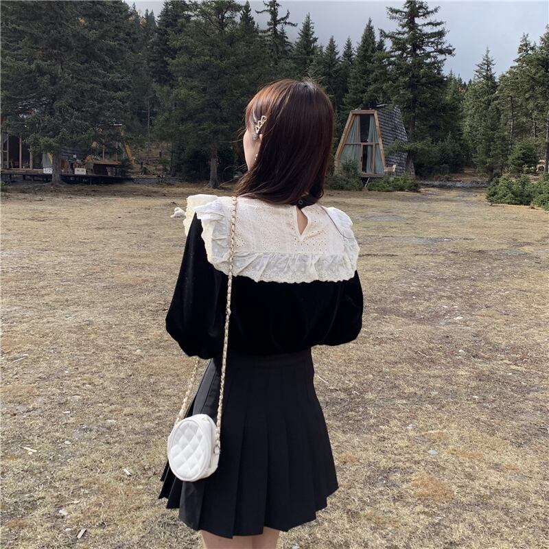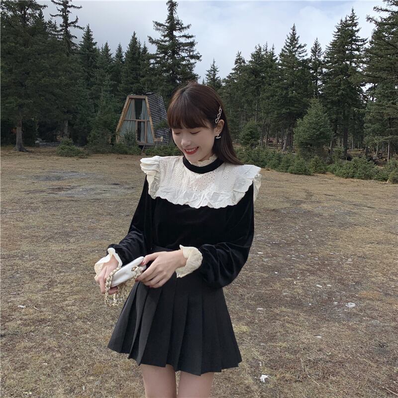 カラーレーススタイルベルベットシャツ レディースオータムウィンター ロング 秋物 冬物 ピュア ステッチ ドラファッションホール51935932522