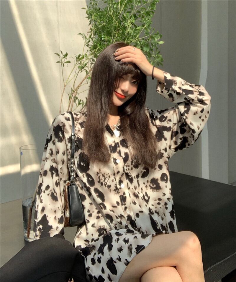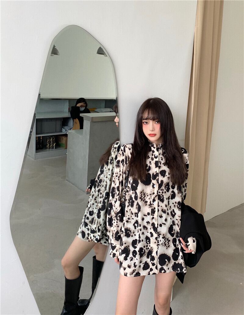 ブラックバックレオパードプリント柄長袖スリーブルーズシャツ ロング ドラファッションホール85469311950