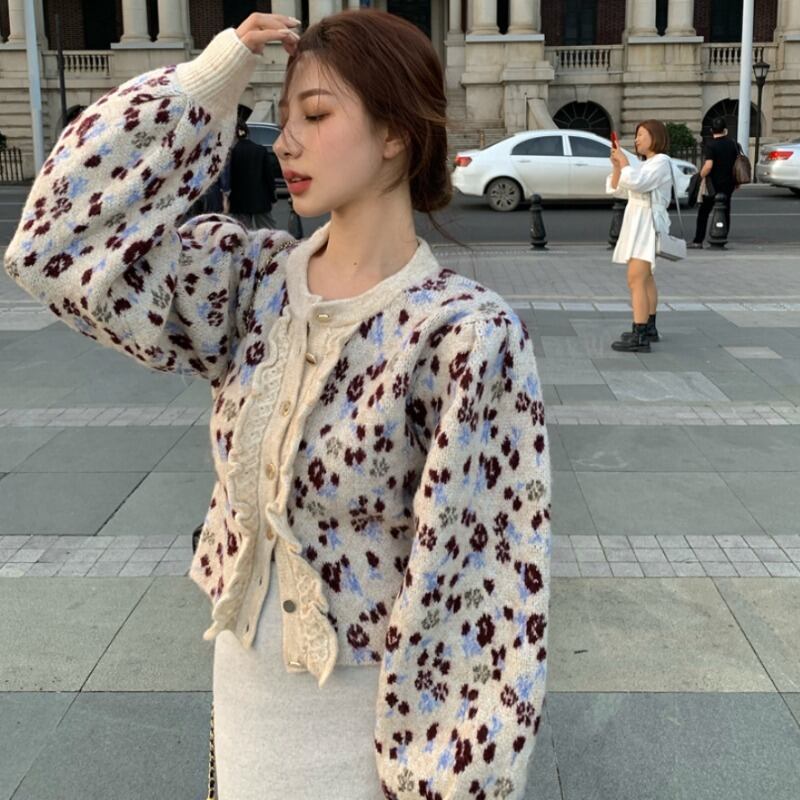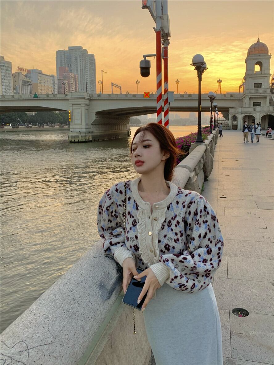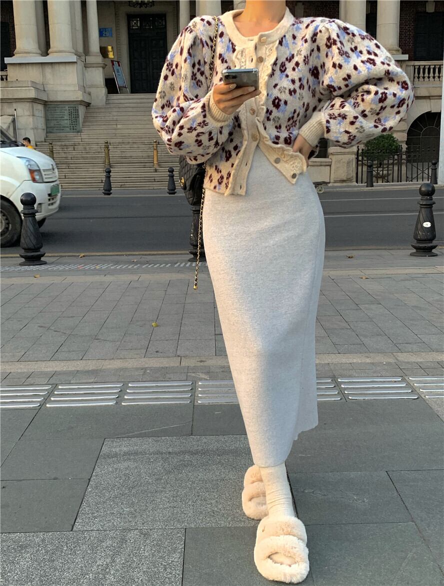 スタイルスタンダードジャカードニットカーディガンジャケット ハイウェストウェストスリムスカート レトロ ドラファッションホール27940108048