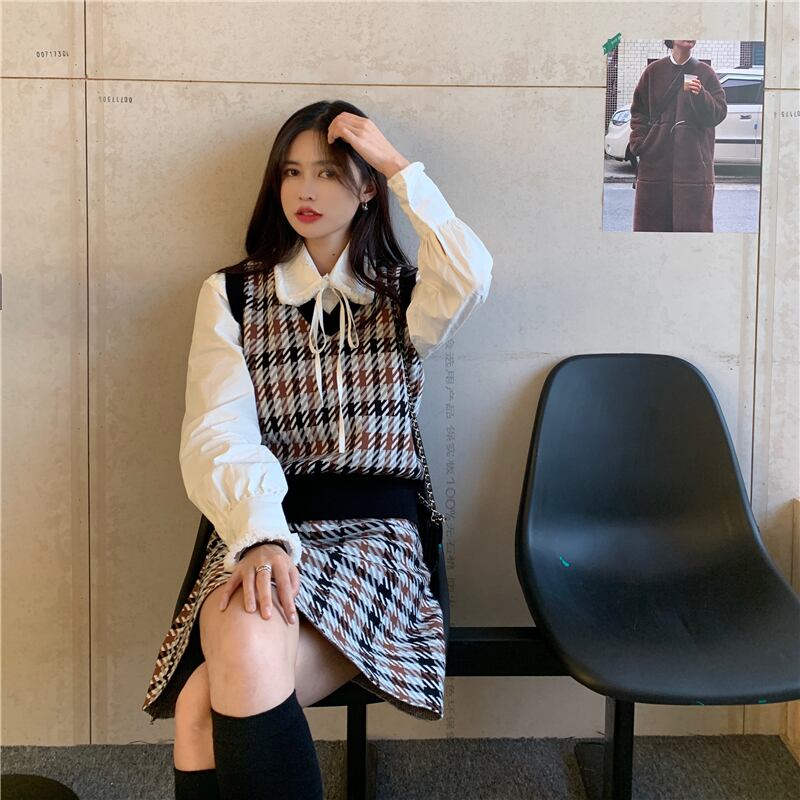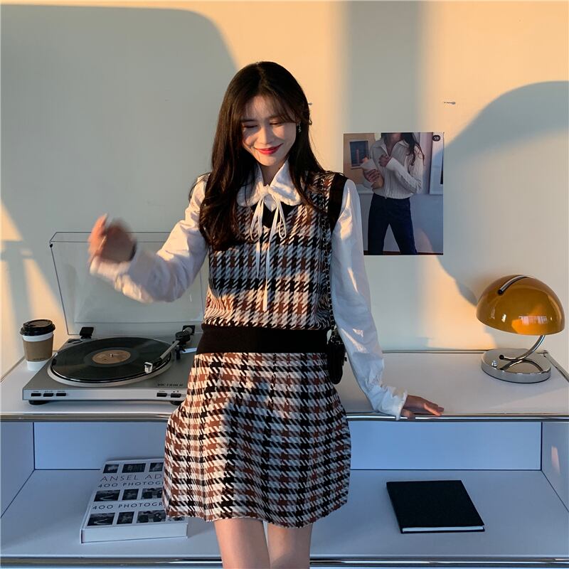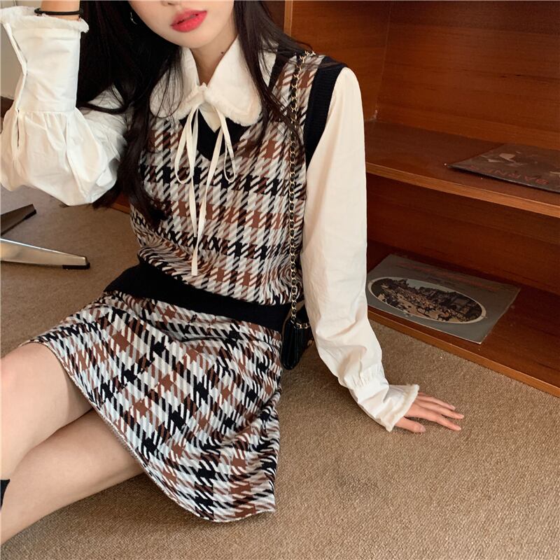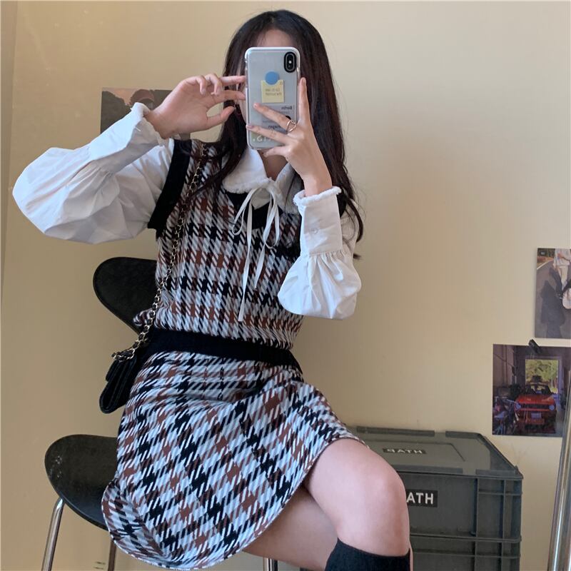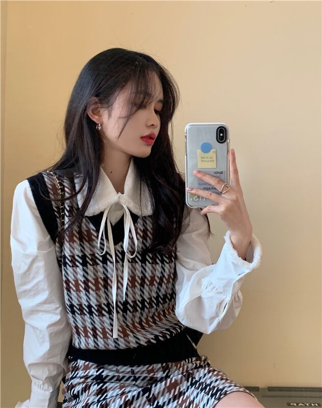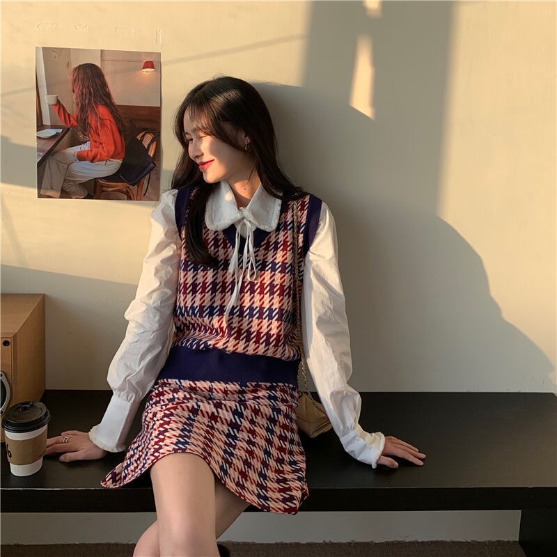 色:シャツ,黒のチョッキスカート,赤いチョッキスカート