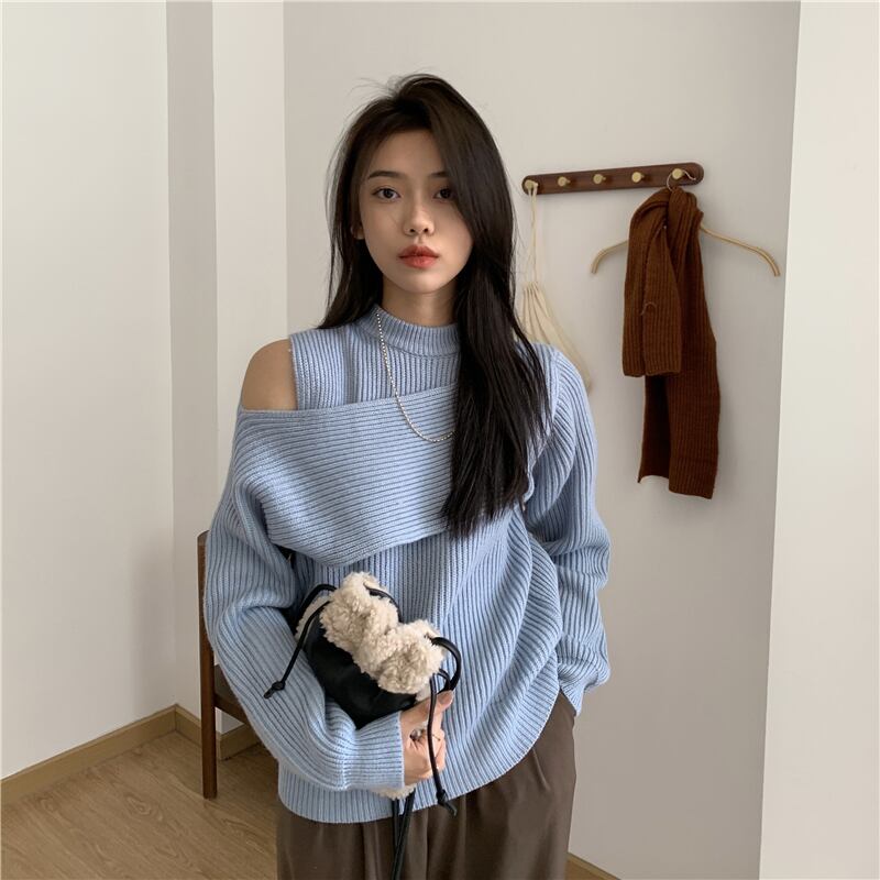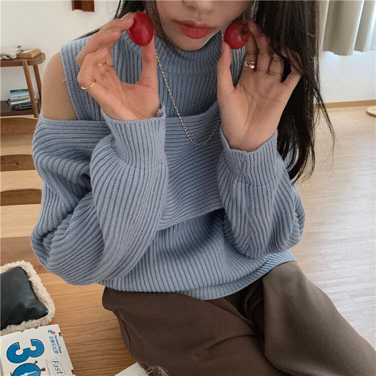 セーター レディースオータムウィンターカジュアルカラー 秋物 冬物 オフショルダー ピュア ドラファッションホール7609185379