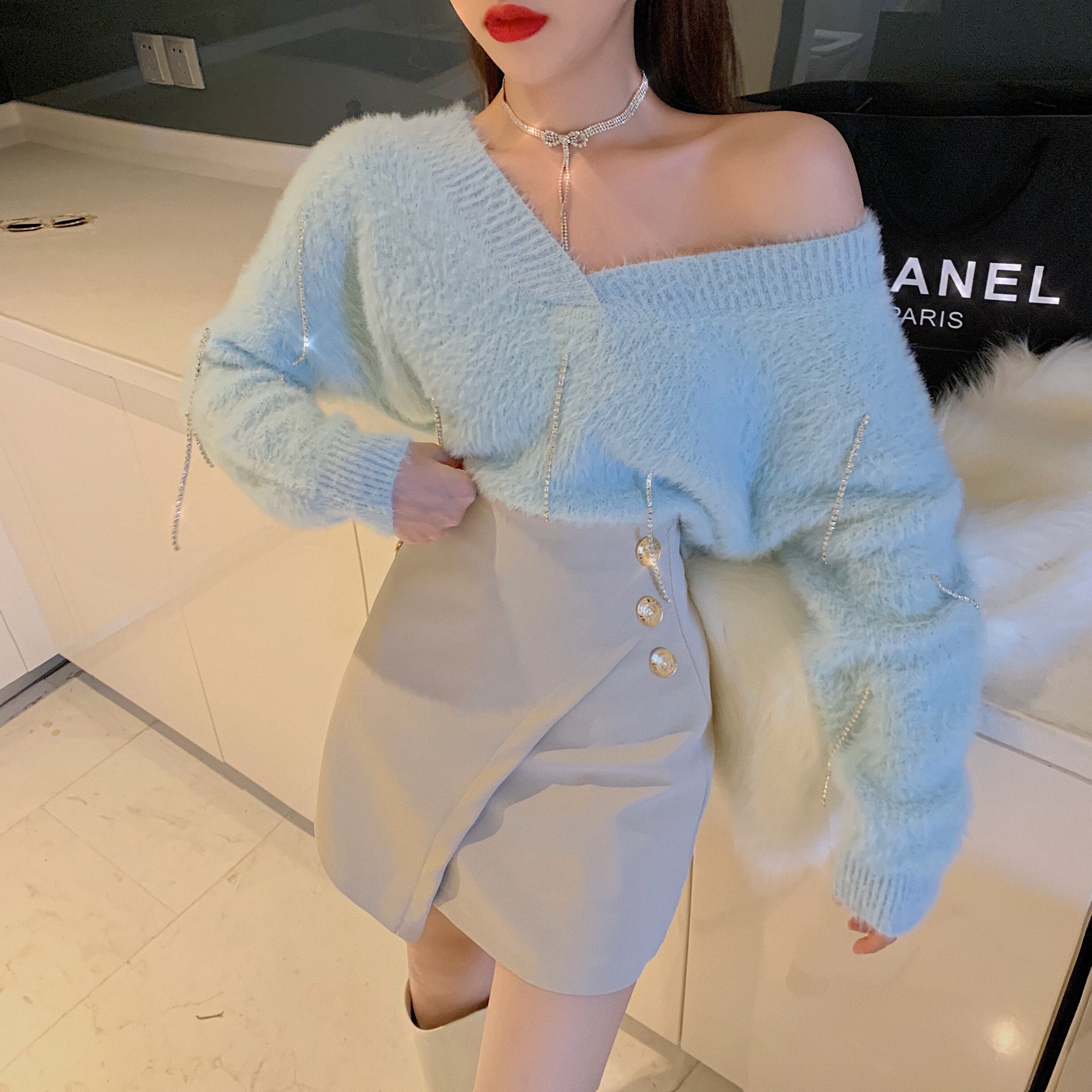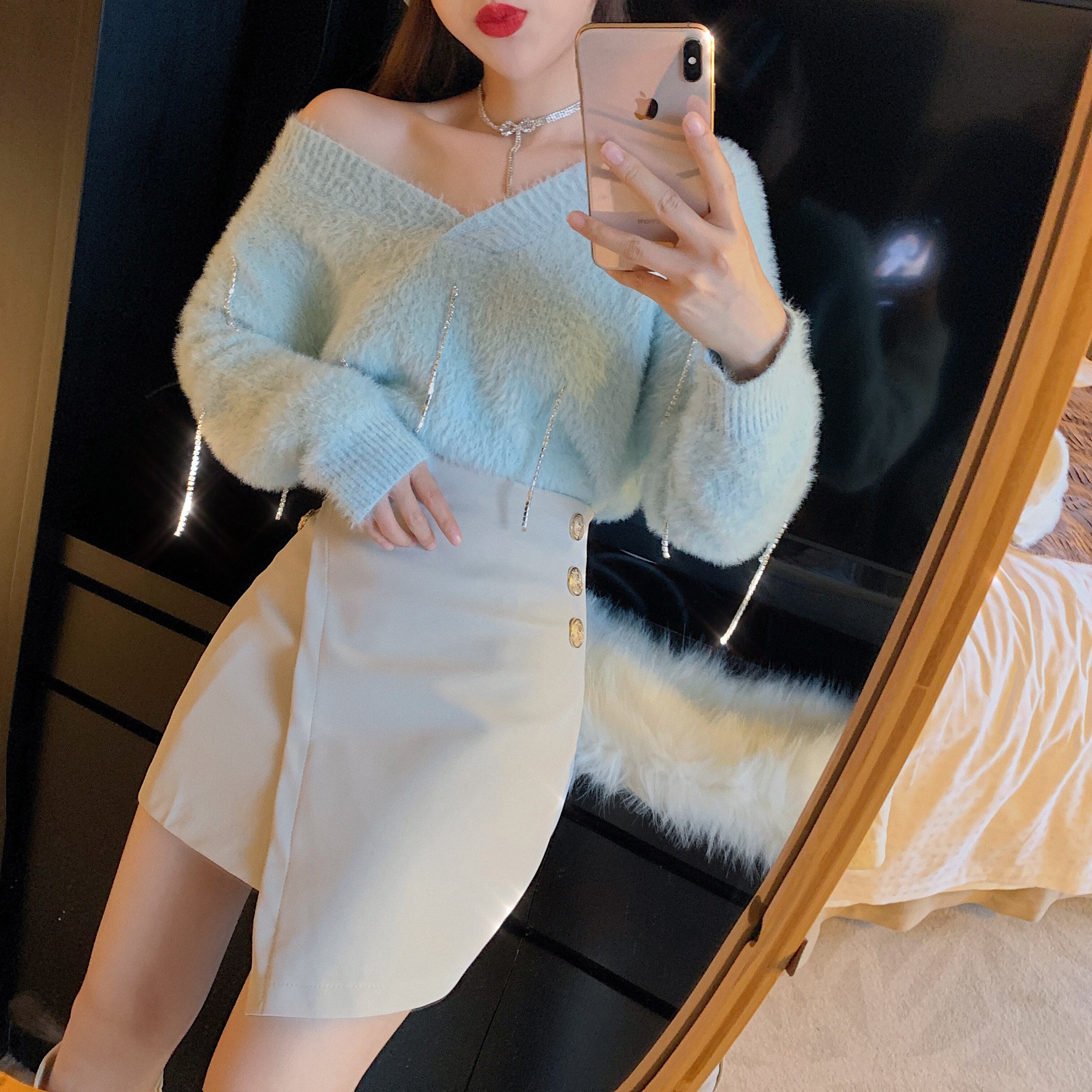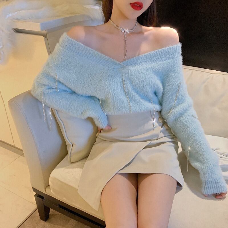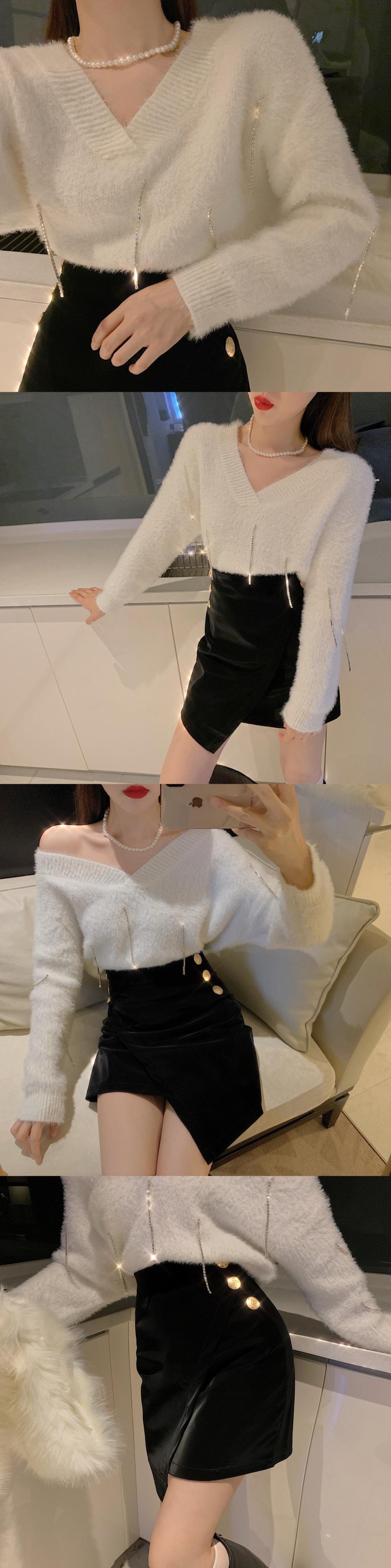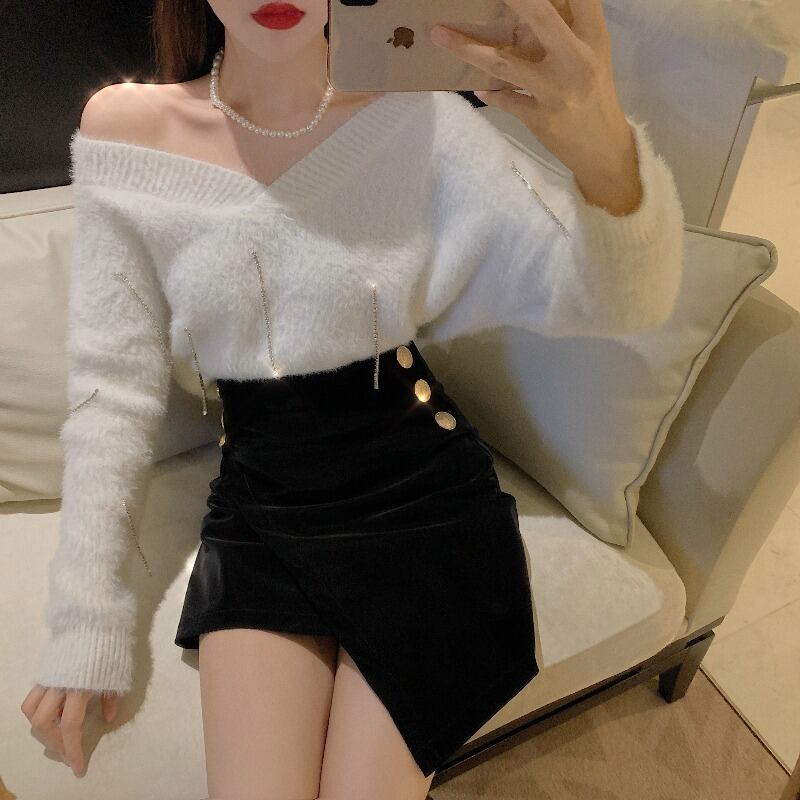 Vネックニットセーター ショートスカート ロング ドラファッションホール1093757800